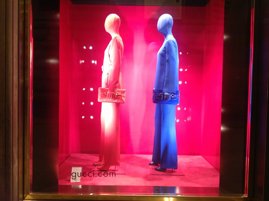 What are the trends? For starters, monochromatic is in big time. One color displays ruled as illustrated by this window at Gucci.