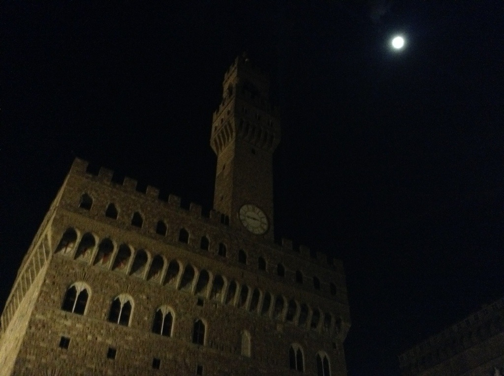 As our departure looms, the Tuscan Moon is still shining over Palazzo Vecchio tower.