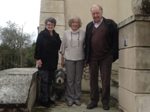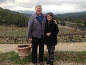 The day was not done. Walter drove us further up the hill to his beautiful home which has a panaromic view of the majestic Provence countryside. Sweeping down the hill into the valley below are the Mourchon vineyards, in sections called parcels, each parcel having different aged vines–some vines can produce for a hundred years with intensity of taste improving as the vines age. Beyond are the mountains of Provence, which have ski runs in winter. On this foggy day, the sight was stunning. Ronnie had prepared a great vegetarian meal for us and we had a delightful visit in a kitchen and dining area that said, “France.” We learned that Ronnie has her own specialty, producing olive oil, and products that specialize in the Grenache grape grown at Mourchon, such as salt infused with Grenache, Grenache confiture, and body/facial lotion with grape oils. The McKinlay’s are certainly making the most of their encore life!