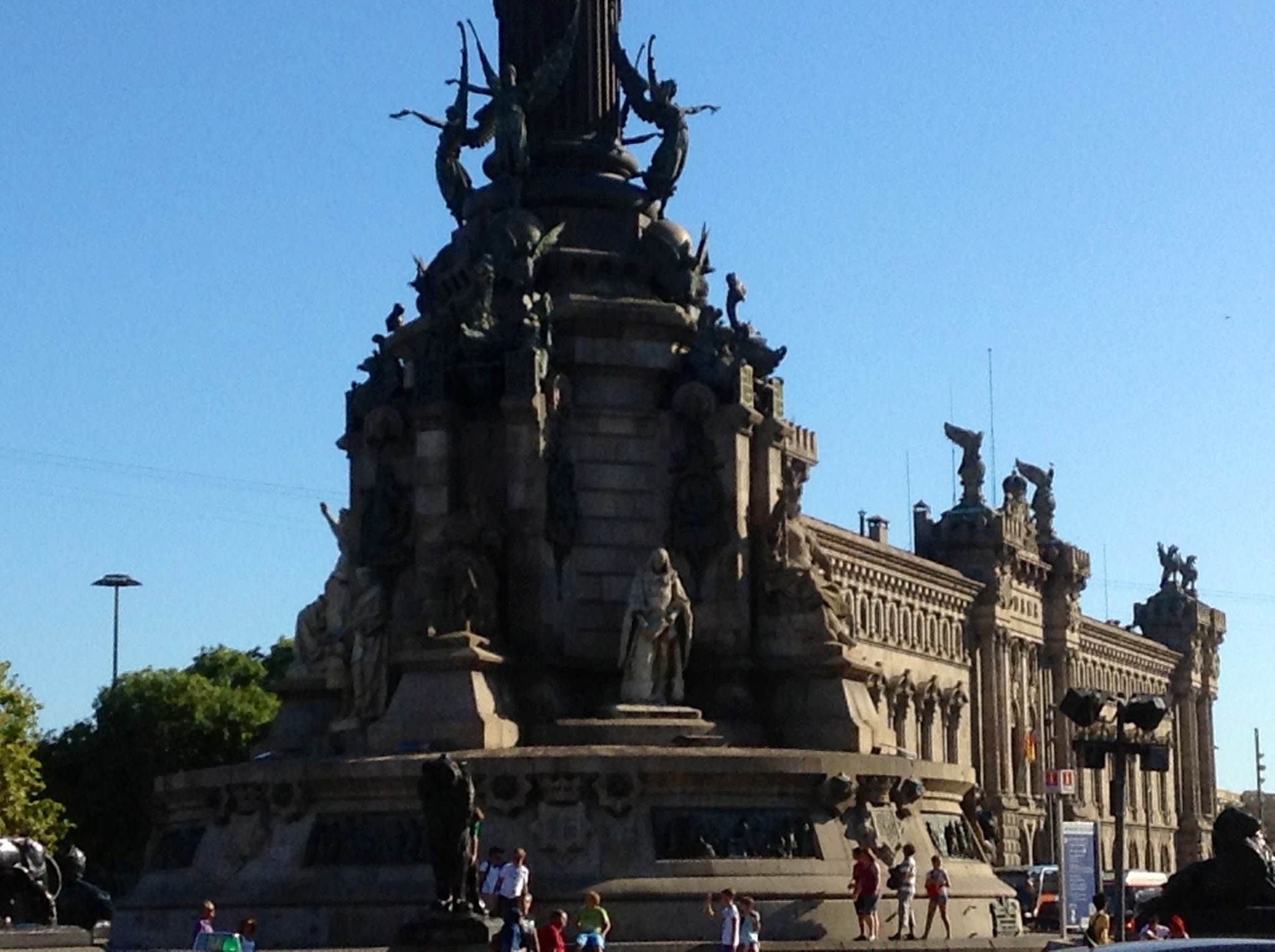 What a fun day we had visiting the historic part of Barcelona! The bustling Rambla cuts into this section of the beautiful city. Pedestrian only, the thoroughfare is surrounded by shops and restaurants with beautiful fountains on each end. We enjoyed the market with its ramble of food vendors, fresh meat and fish stalls, vegetable and fruit vendors, and so forth. The majestic Columbus monument near the Mediterranean Sea is a landmark overlooking a yacht harbor and many beautiful Spanish buildings.
