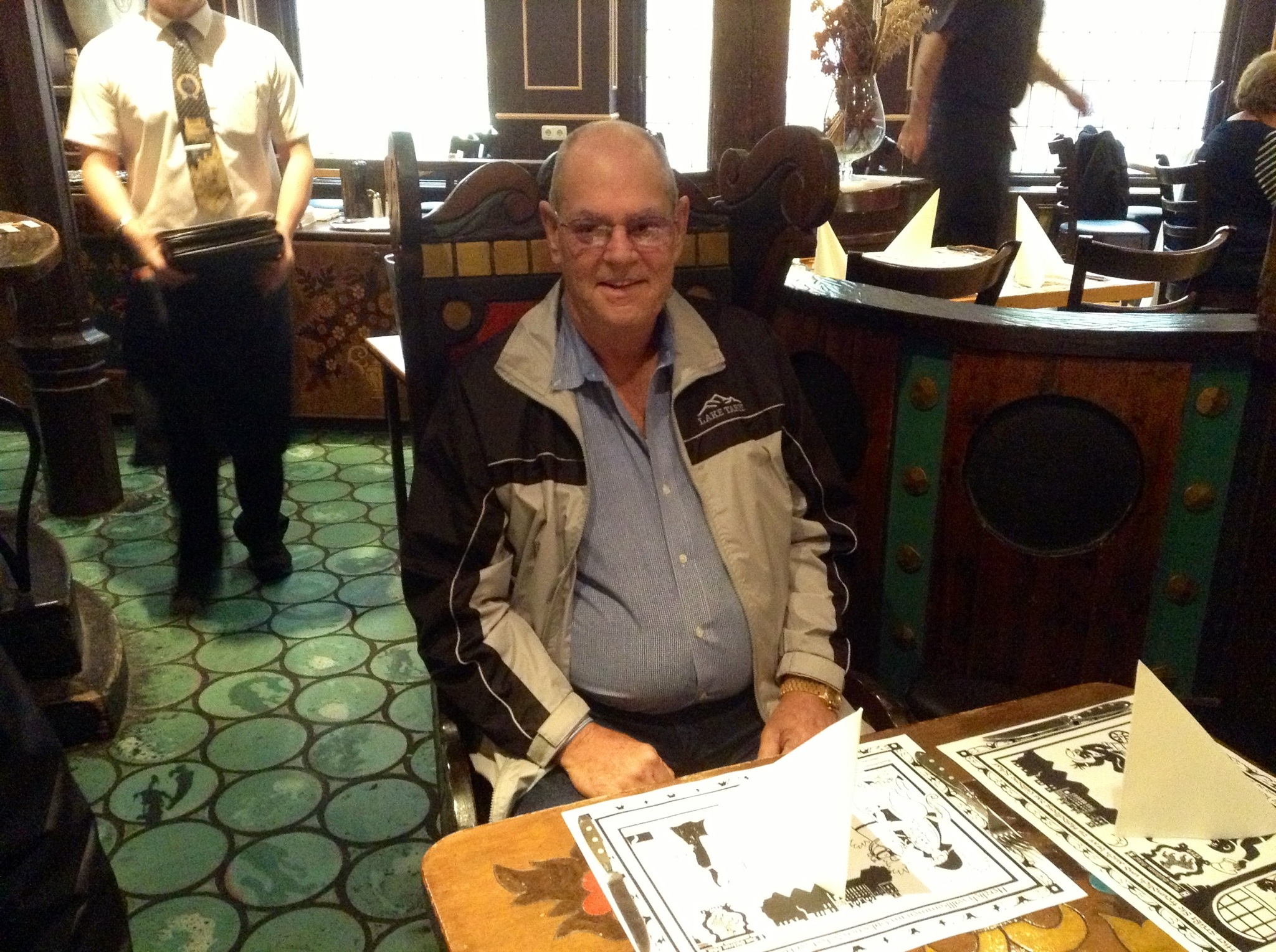 Allen finally found a chair to his liking in Heidelberg, Germany. In an authentic regional restaurant, the biergarten interior had a throne-like chair at one table, and Allen immediately claimed it as his own, declaring that “he was from royal blood” and so he deserved to sit there. Rhonda blamed his delusional thinking on high blood pressure.