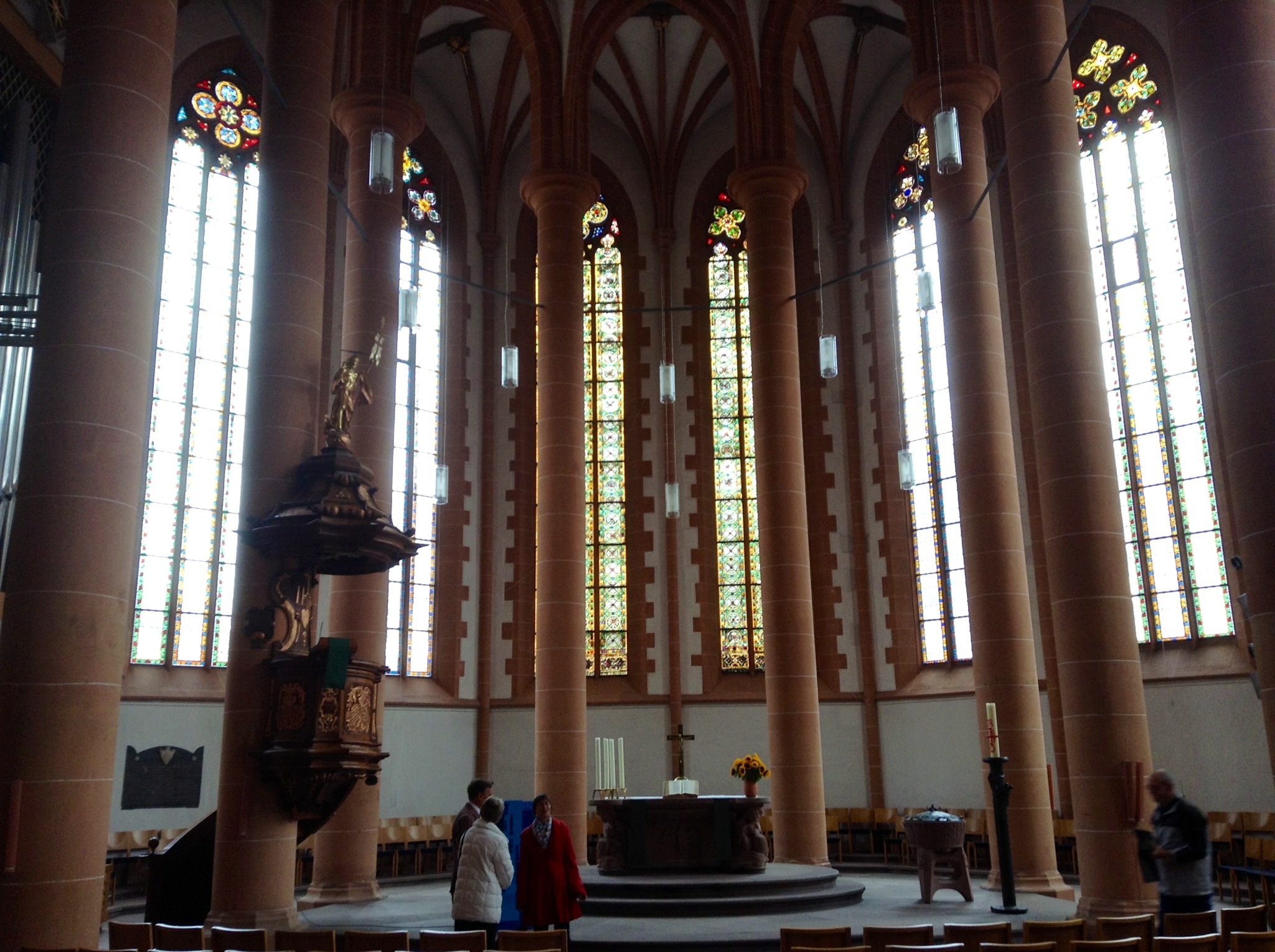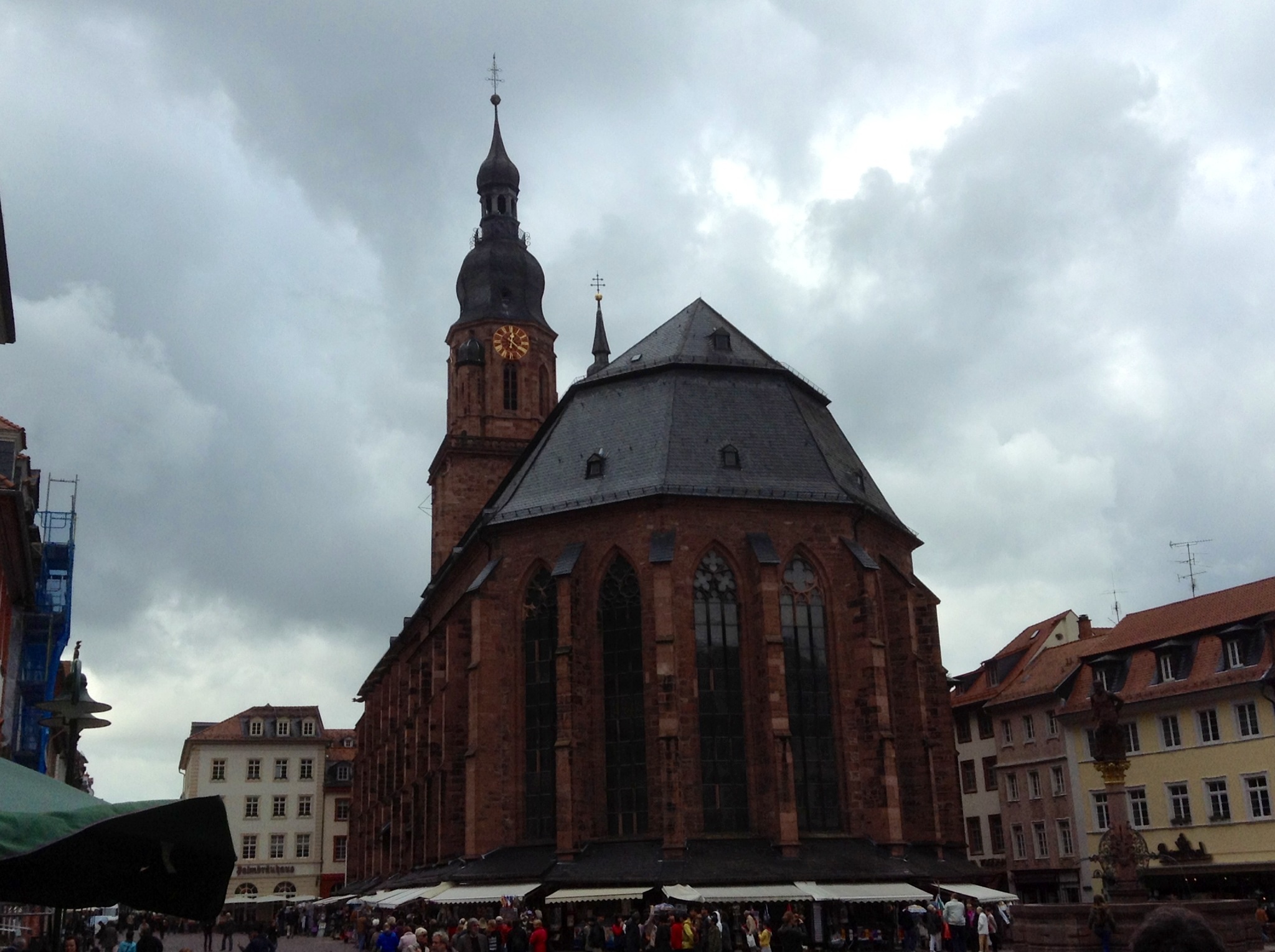 We happened into the Heileggeist (Holy Ghost) Church in Heidelberg, Germany, just in time for the noonday devotional. What a treat–organ, soloist and the finale of a trumpet playing “Amazing Grace.” While short, the service was heavenly–the music simply wafted and reverberated through the massive interior of this Lutheran Church.
