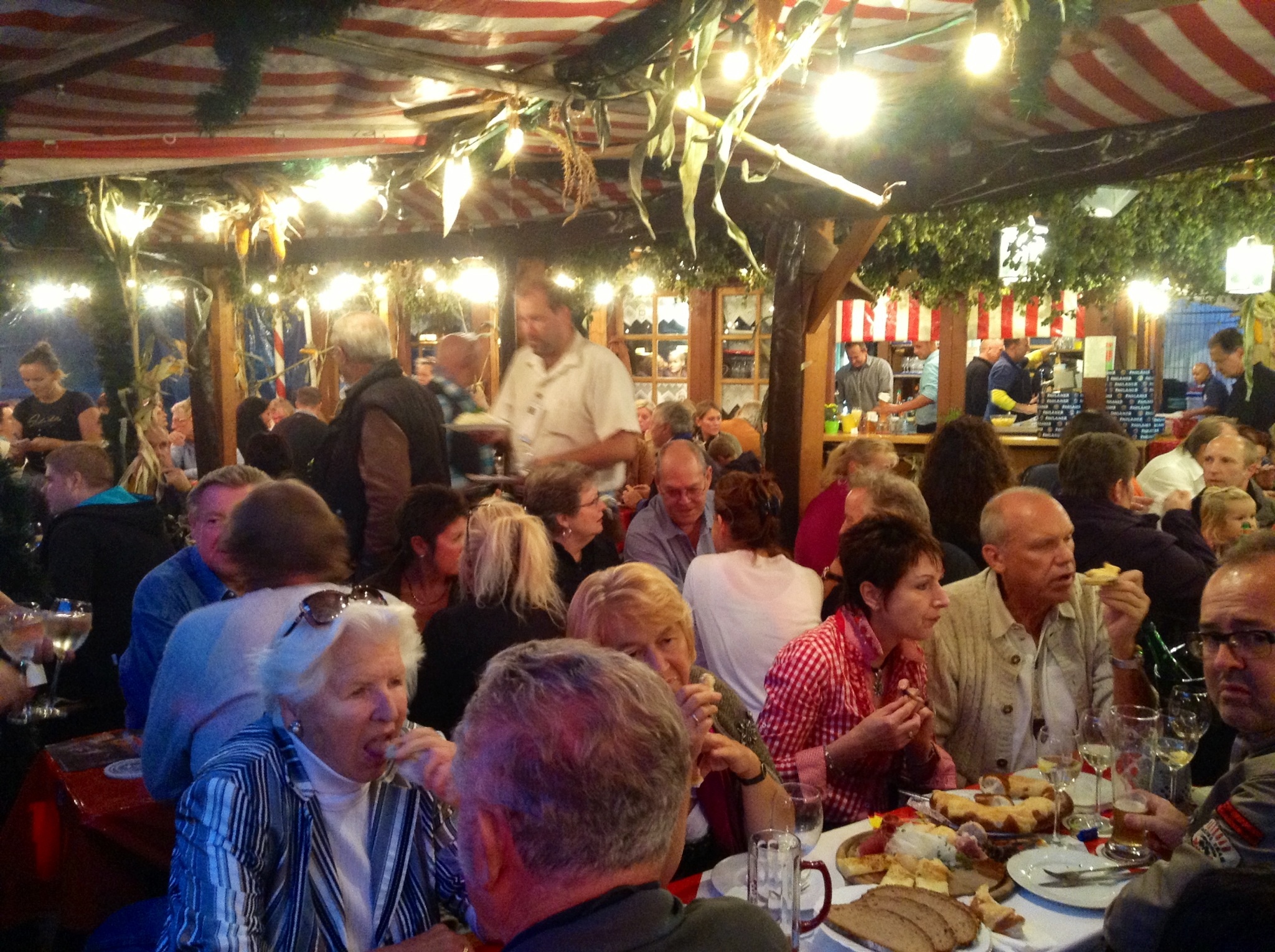 The city’s Altstadfest is in full swing. Music stages fill the squares and each of the over 300 beer and food huts–I can’t think of a better way to describe them–they are portable, but built of wood, and they have full kitchens churning out delicious food that features pork in some fashion on the menus–also have some kind of music, from German oompa to jazz and swing. Because of the crowded conditions, the Krahn’s ate with a couple from the Netherlands, and we ate with a couple from Germany–great international relations and interesting conversations. We have loved our time in Nuremberg and were fortunate our visit coincided with the Altstadfest.