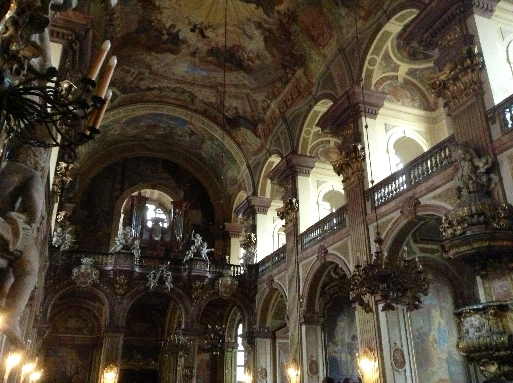 Interior of the Church of the Most Holy Name of Jesus, Wroclaw, Poland, miraculously avoided destruction during World War II.