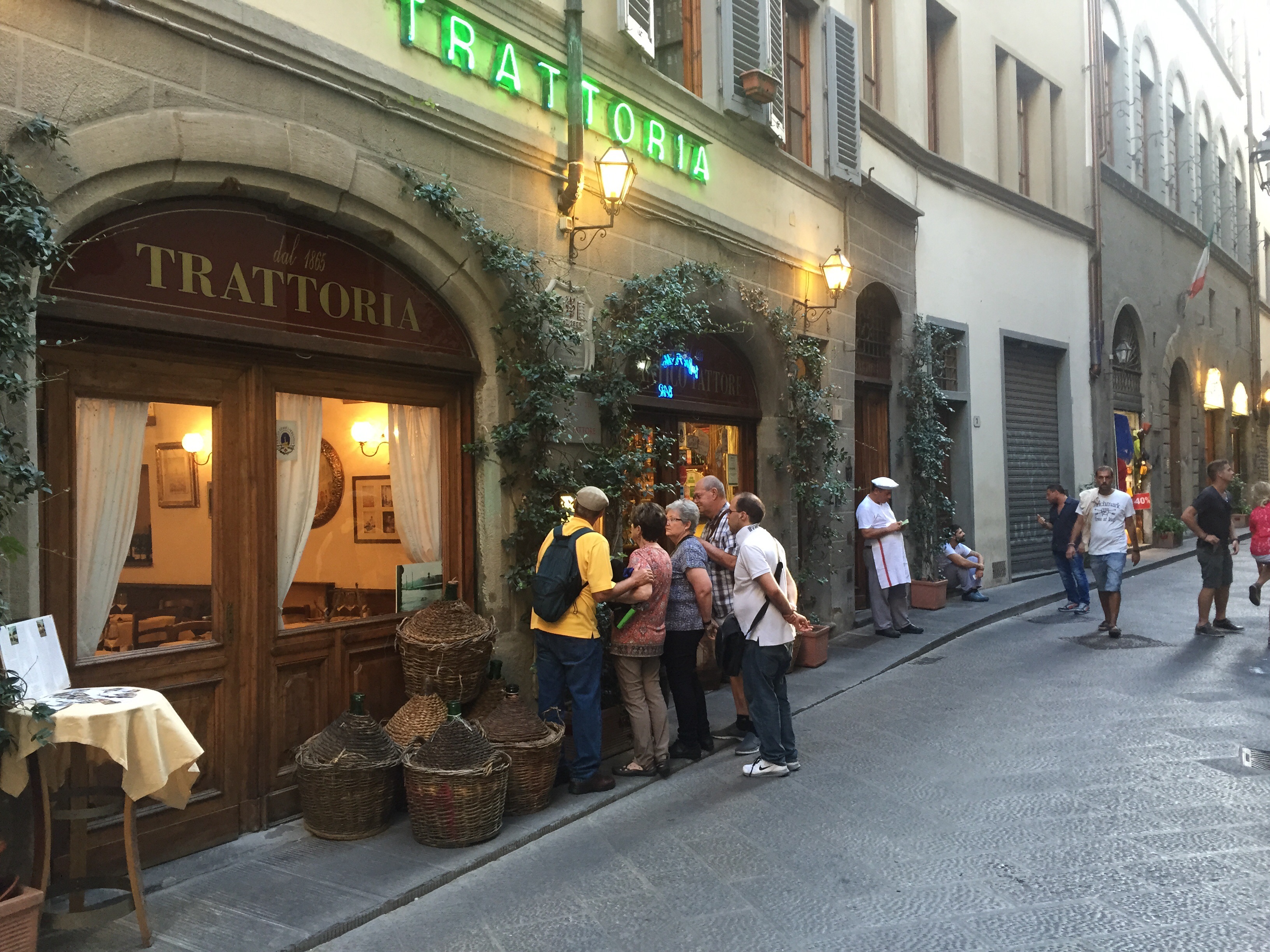 Studying the menu before selecting the trattoria in which we would eat our evening meal in Florence
