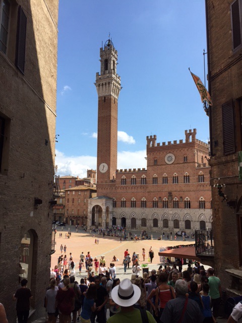 While lodging in San Gimignano, we took a side trip to the nearby hilltown of Sienna, entering by foot through one of its imposing gates