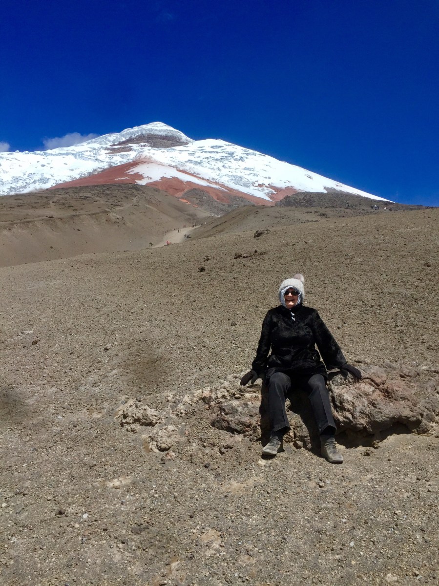 Kathy Graumann, resting on the ascent to the Cotopaxi Volcano Shelter, May 28, 2017
