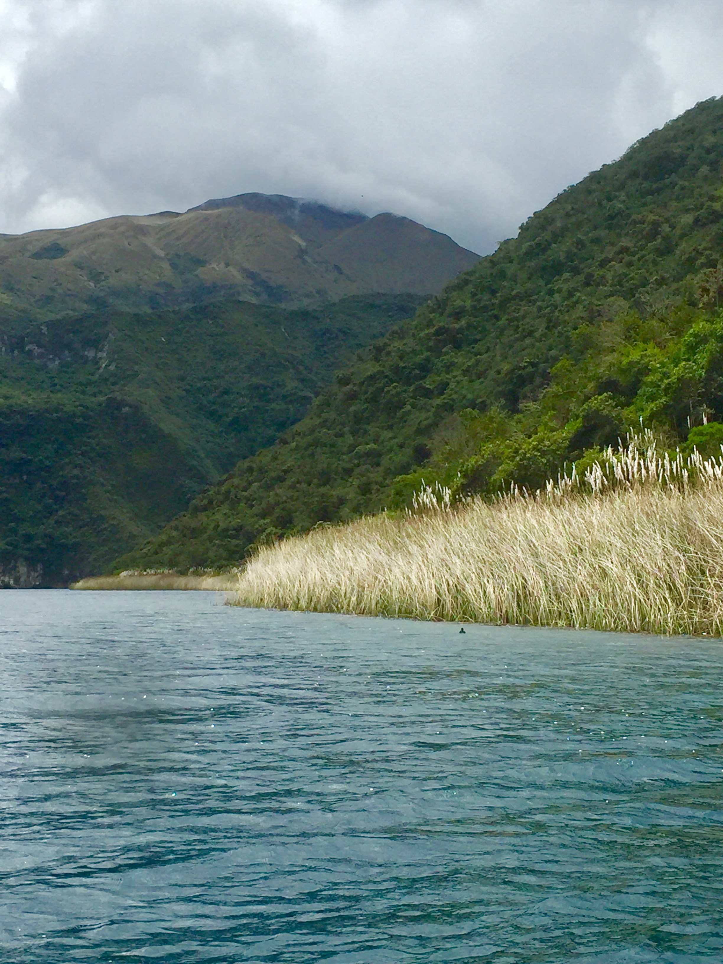 Laguna Cuicocha, a crater lake at the foot of Cotacachi Volcano in the Ecuadorian Andes