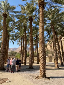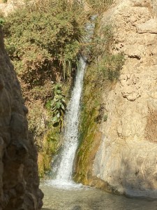 Date palms as far as the eye could see in every direction and a wonderful cool refreshing breeze greeted us at Ein Gedi, the desert oasis south of Jerusalem. Rolling barren, yet hauntingly beautiful, cliff-laden hills suddenly turned to palm trees, scrub brush, low growing trees and beautiful flowers. A rushing stream brought life-giving water to the area. Ein Gedi is the oasis, hidden in the desert, to which young David fled when jealous and suspicious King Saul tried to have him killed. The caves in which he and his men hid in the cliffs are clearly visible from the oasis. Walking the trail, one encountered Ibex, a type of mountain goat, and desert rats. The trail’s upward climb led to rushing water and beautiful waterfalls. For the first time in my life, I understood, experientially, how one feels when you come out of the desert into a refreshing oasis in life. The sound of rushing water, the gentle breeze, trees to shade your path, the calm. Life can be hectic and yet, God provides an oasis to bring us relief. I now have a reassuring mental picture to hold onto.