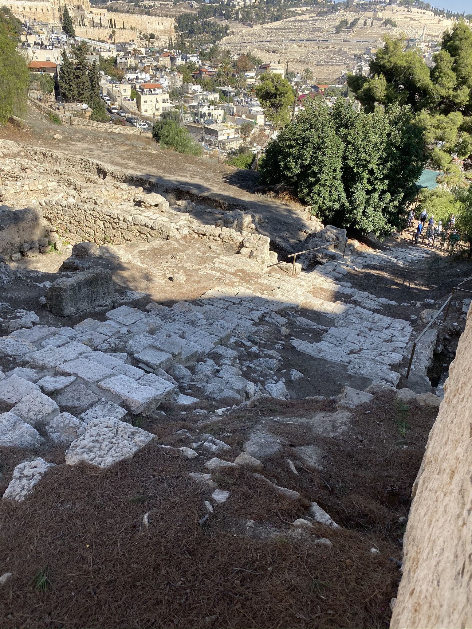 Visiting the Church of St. Peter in Gallicantu, we stood in the courtyard where Peter denied Jesus. The church was built on the site of the home of temple high priest, Caiphas, where Jesus was tried, mocked and imprisoned. We stood in the jail cell and viewed the steps down toward the city on which Jesus walked after the trial as He made His way to Pontius Pilate who would allow Jesus to be crucified. Touching to say the least.