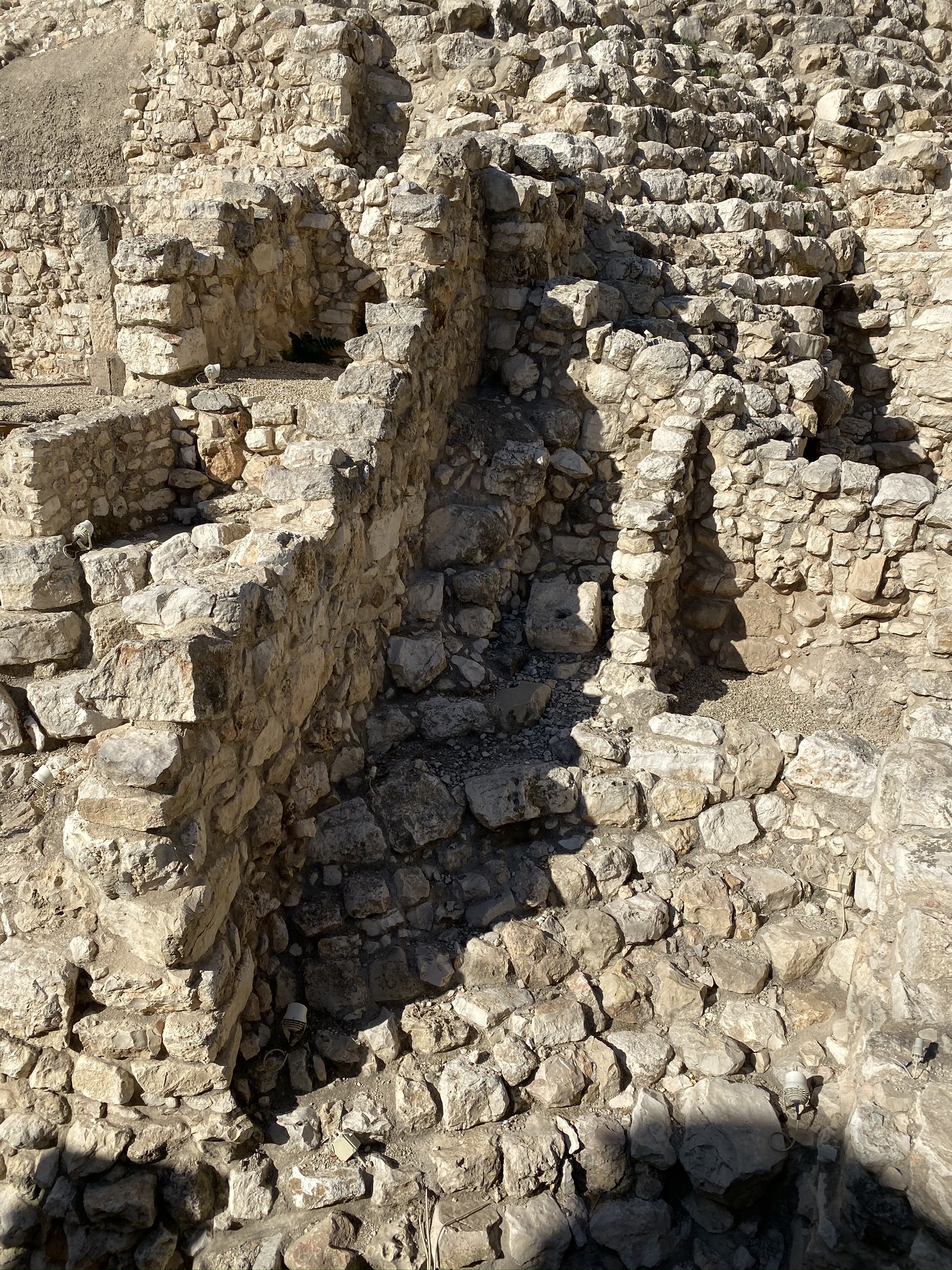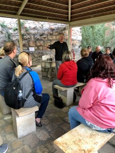 Hezekiah knew the Assyrian army was marching toward Jerusalem. He had to act quickly to safeguard the city’s water supply. Deploying two huge crews of workers, he instructed one crew to dig from point A to point B and the other crew to dig from point C to point B. Working from opposite directions they met in the middle. When finished they had dug a water channel 300 feet below the surface to connect the Gihon Spring in the Kidron Valley to the Pool of Siloam in the middle of the city. It was a major feat but it guaranteed that Jerusalem would have an adequate and defensible source of water. Today, one could walk the tunnel still flowing with water and, as they say, “Walk on Water.”  Those who did not prefer to get wet could walk the “dry tunnel,” dug by the Jebusites over 300 years earlier. This tunnel was found by General Joab who invaded the Jebusite city on the instructions of King David. Overpowering the Jebusite city, King David named the city Jerusalem—the City of David—and began a large building program. We saw remnants of David’s palace and government offices. Recent discoveries of letters with the official signite have contained names and events recorded in the Bible, thus authenticating the Scripture. Remarkable!