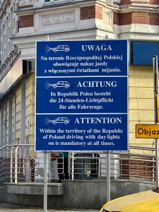 As we walked over the border, there were buildings painted in a Polish style, pastels with white trim. Much refurbishment and revitalization is being done in Zgorzelec, Poland. It was past noon and we thought what better use of our time than to have lunch in Poland. What an adventure that turned out to be! One restaurant after another was closed until later in the day. Then presto, an open restaurant on the river! I am positive it would be hard to find a finer restaurant anywhere! Housed in a historic building and refurbished in high style, the linen tablecloths and napkins at Miodmaliny said, “Right place.” Polish stencil work on the walls and red velvet couches and silver velvet chairs made for comfortable seating. The chef was so gracious to explain wine, beer, cordials, appetizers, main courses, desserts. We tried it all! Thin pancakes with Polish curd and fruit and mushroom and sour cabbage perogies in herbed cream sauce were our shared appetizers. Cabbage rolls with veal in a rich tomato gratin; golden duck with whole cranberry sauce and baked apple with Swabish (a state in the old German Empire that was given to Poland after World War II) potato dumplings were our main dishes. The duck was by far the best I have ever eaten–crispy exterior and tender interior. The wines and beers were very good and the fruit cordial tasty. We all oohed and aahed the rest of the day.