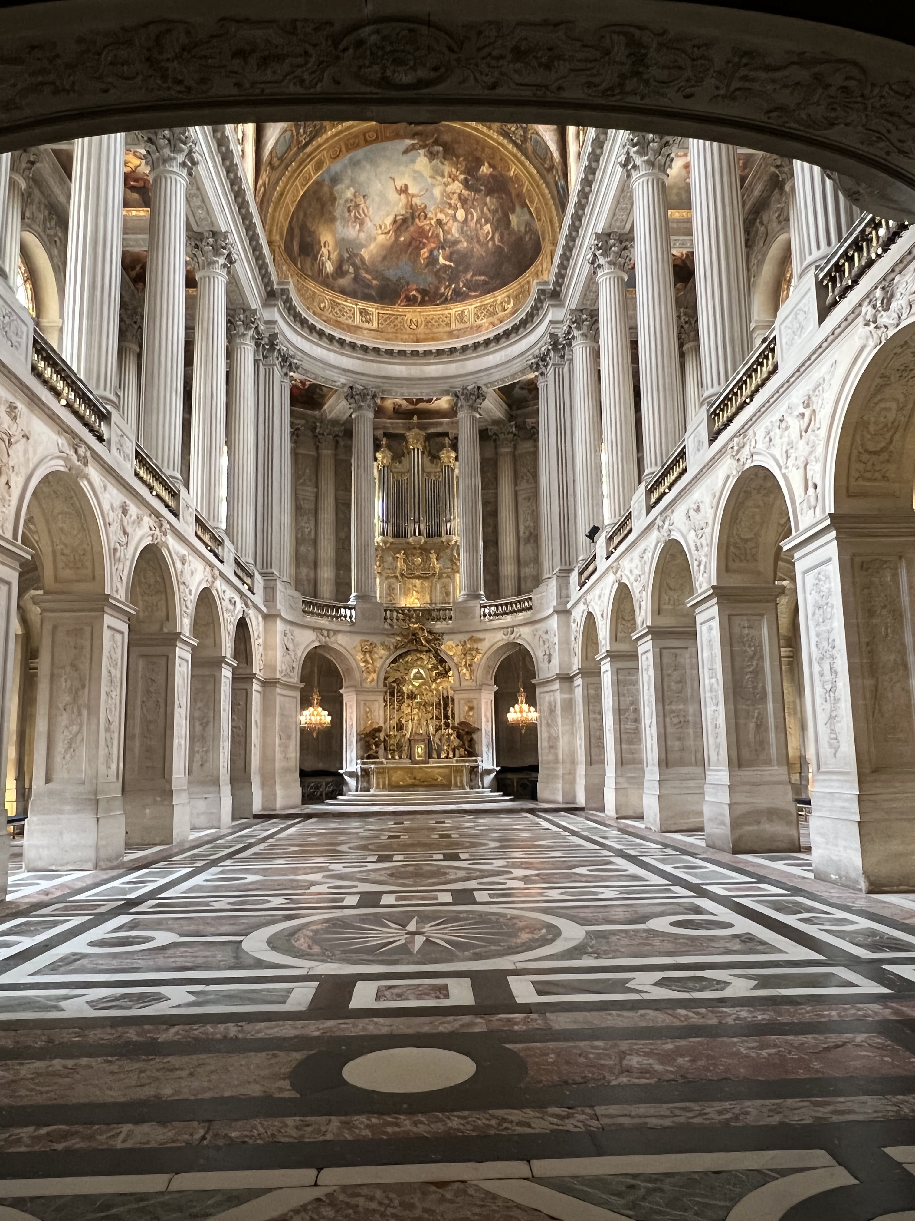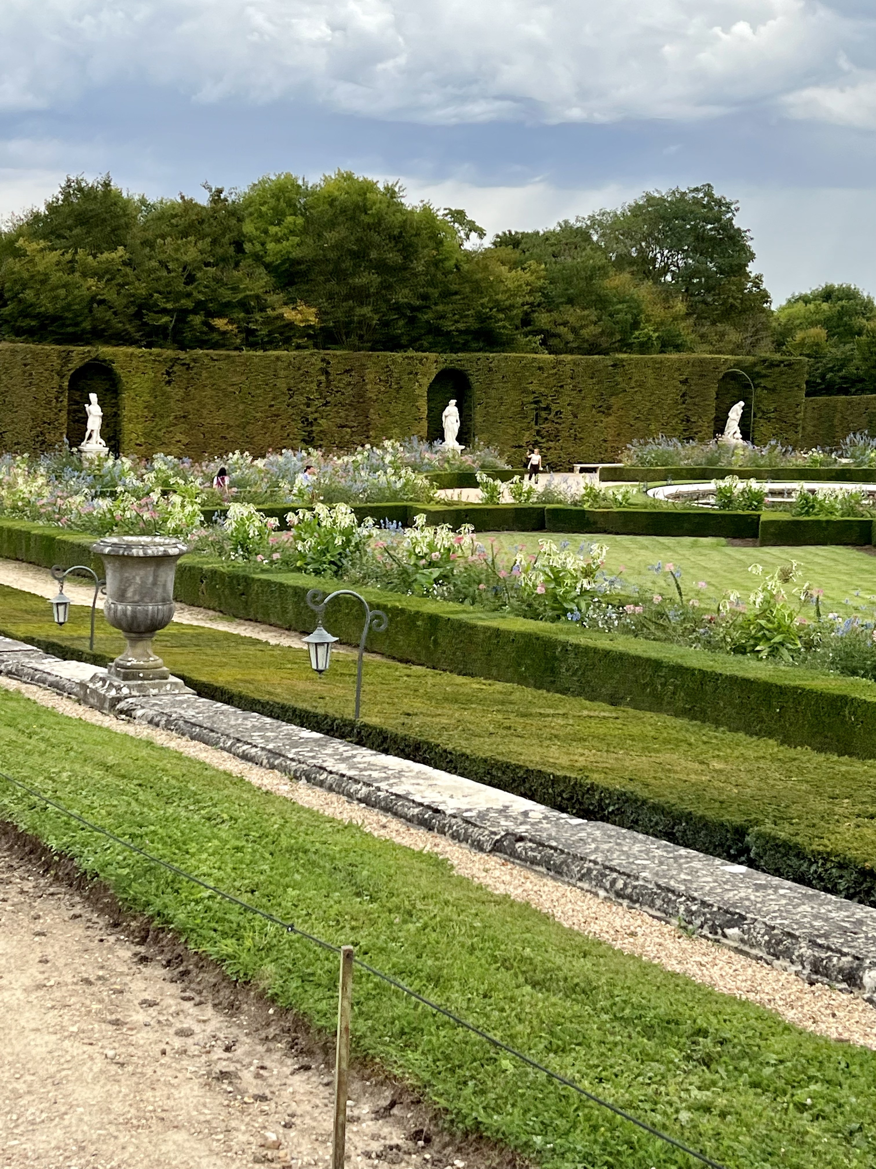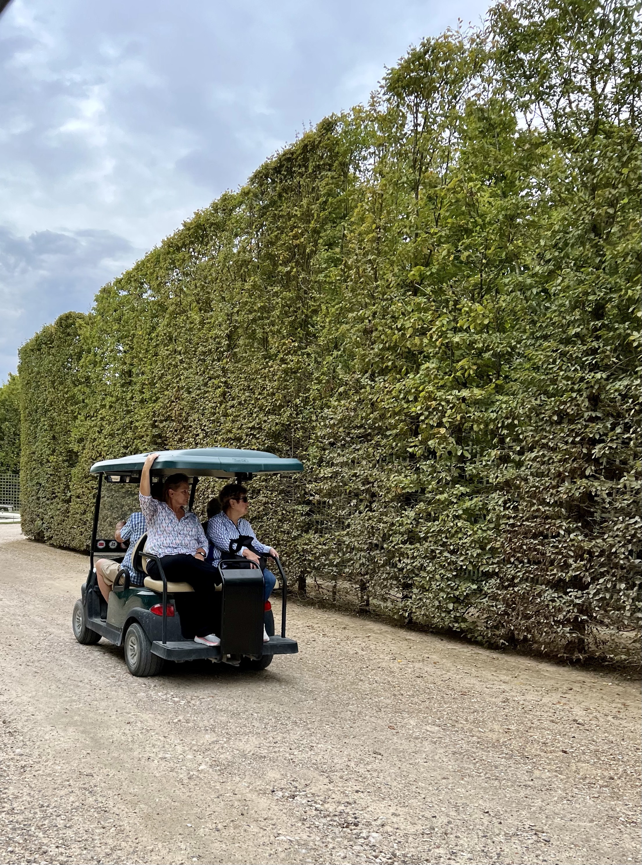 The grounds are also a delight. Because of their immense size, we ordered golf carts to drive along the trimmed hedged corridors past fountains, smaller palaces, outdoor court yards and lengthy man-made canals. King Louis XIV actually had specially built galleons and Venetian gondolas that plied the canals for entertainment purposes. It was all lavishness beyond comprehension. Electronically monitored, the golf carts are given a specific path to follow—go out of the path and the golf cart dies; only the reverse works. Allen drove in the front, because he insisted that I was unreliable as a driver. He went off course twice—I never did! Once, he reversed so much that he almost ended up in a fountain. The people around applauded when he finally got into forward motion.