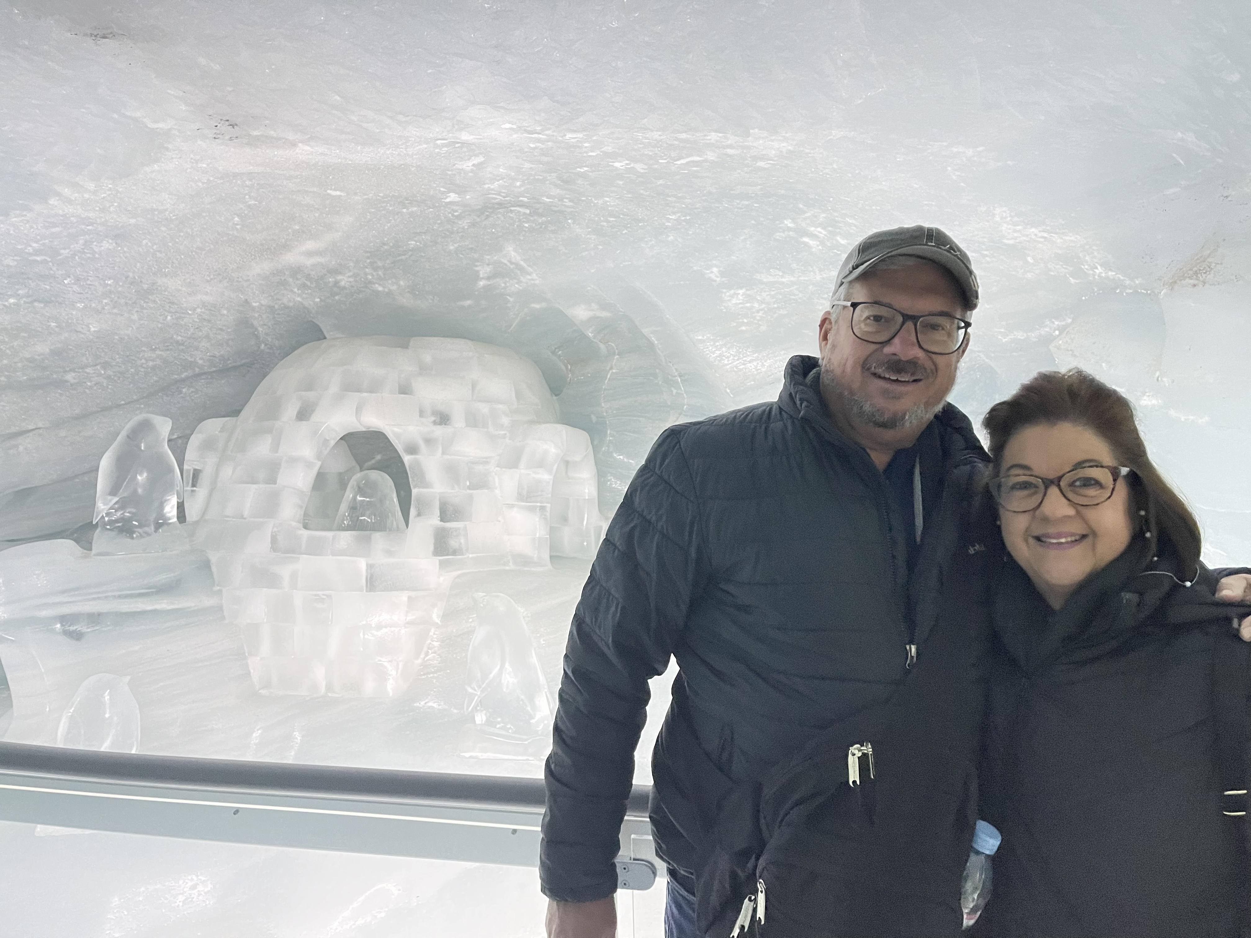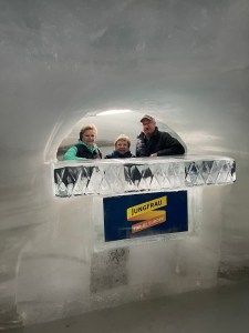 The Standly’s and Nichols/Hunt group spent their day at the “top of Europe” up from  Grindelwald. It is an awesome pinnacle surrounded by the Eiger, Jungfrau, Mönch and other Alpine mountains. (Kathy and I have been here in the past.) With a tower platform view, the snow-covered Alps spread out before them in every direction. It is truly mesmerizing! Below the peak is a mountain glacier into which is carved an ice palace with ice sculptures in the ice blue surroundings. With clear weather after a day of snow, they had an astounding day.