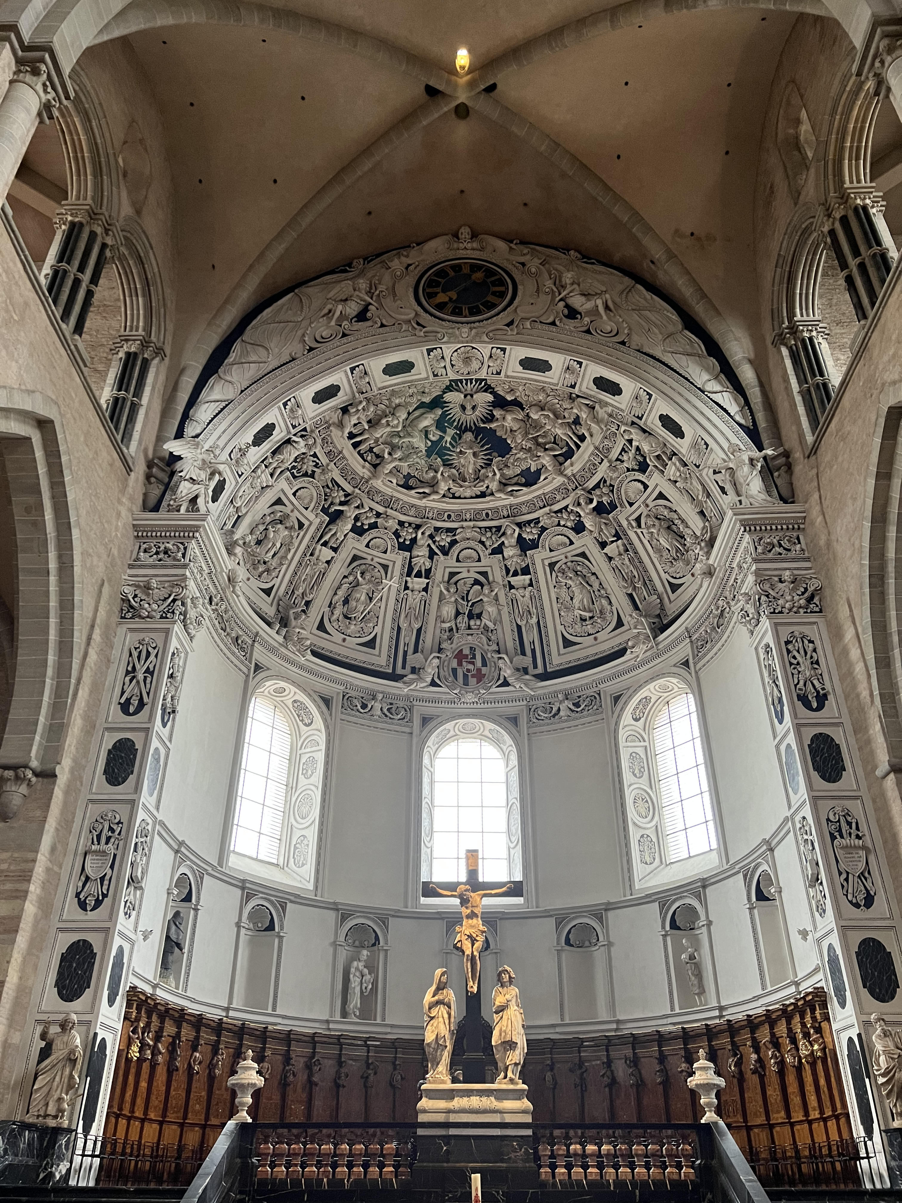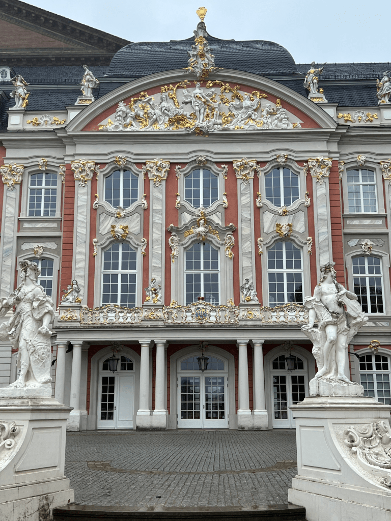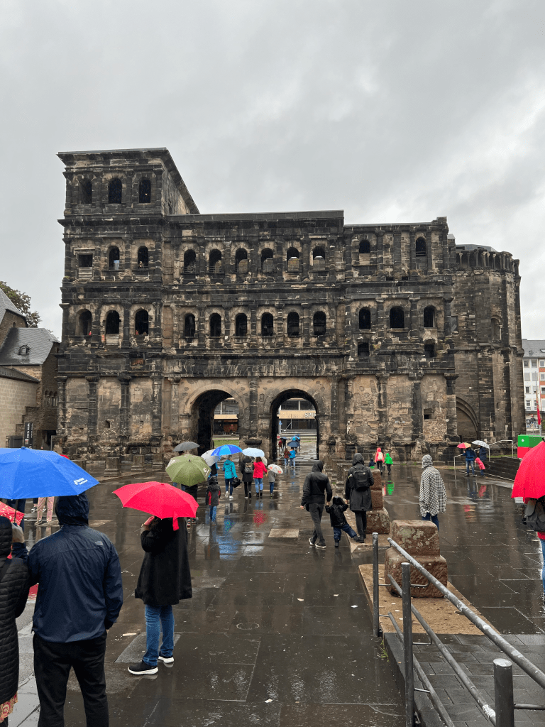 Trier is Germany’s oldest city with deep ancient Roman roots. As the northern capital of the Roman Empire, it is filled with ancient Roman artifacts. As we walked along, I thought, “The glory that was Rome!” The Emperor Constantine’s (3rd-4th Century) Throne Room is the largest single room remaining of ancient Rome. Today, it is an Evangelical/Lutheran Worship Center. Marty and Karen attended the Sunday worship service and said it was beautiful. The Imperial Baths are monstrous. The Standly’s and we walked in underground tunnels and were amazed at the length and complexity of the baths. We thought we might get lost, but didn’t. Intriguing! The Coliseum is largely a ruin today. However, we were able to walk in its underground beneath the coliseum floor where the wild animals and gladiators were kept. A stage system was able to be employed to raise surprises to the surface during the games. The seating capacity was 22,000 spectators. The coliseum had 4 vomitoriums—places where people who were sickened by the spectacles or who had drank or eaten too much could go to “throw-up.” Another stand out site is the well preserved Porta Nigra, or city gate. It is colossal in size. Besides all this, the Altstadt (old town) is beautiful in its own right. The wonderful Roman Catholic Cathedral is actually two churches. The Gothic side is superb with beautiful paintings and stained glass and the Romanesque side is daunting with intricate plaster work and numerous archways. It is one of the finest Romanesque architectural works anywhere. Unfortunately, the remnants of the Electoral Palace of Trier were closed and we did not get to see the famous Rococo staircase. The palace was at one time one of the most beautiful in Europe with a Baroque wing, a Rococo wing and a Renaissance wing. Wars over time, especially World War II, ravaged it and now very little remains. Amazingly, the Rococo staircase was largely unscathed, although the rooms around it were destroyed. We had to comfort ourselves with pictures and maybe, another time?