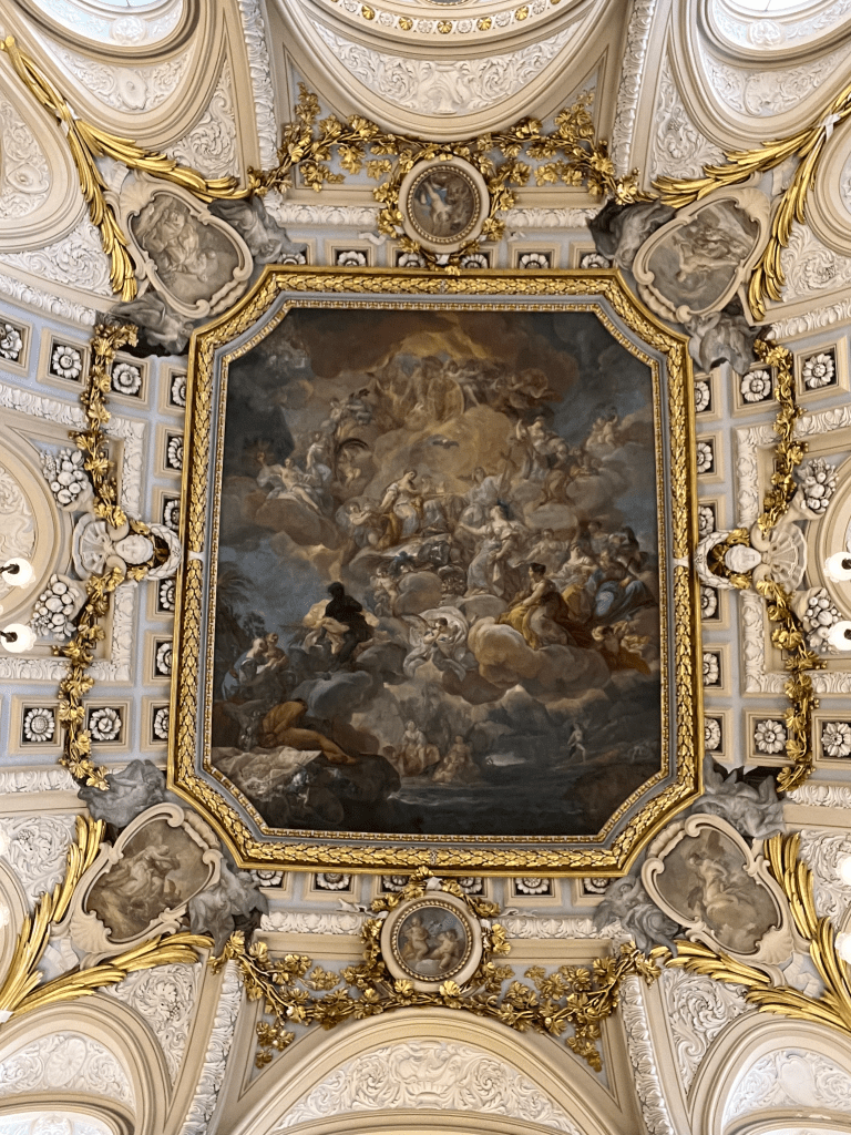 The Plaza Espanã at one end of the Grand Via was wonderful. A long narrow expanse, it is a pedestrian park filled with flowers and trees and walkways. Madrid is full of beautiful parks. The Plaza reaches to the Royal Palace and Madrid Cathedral. Within the Plaza is a marketplace with neat rows of wooden stalls selling all types of goods. We saw the largest loaves of bread we have ever seen for sale. Before we visited the Royal Palace, we were able to witness the Changing of the Guard outside. Stately, yet, simple. Inside the Palace we were once again absolutely surprised with the huge scale and the beauty we saw. The interior rooms were easily as beautiful, if not more so, than the other grand palaces of Europe we have experienced. Ceramic work on moldings and sculptures were eye catching and colors within rooms were totally coordinated. The artistic tapestries woven by weavers from Brussels were breathtakingly beautiful.