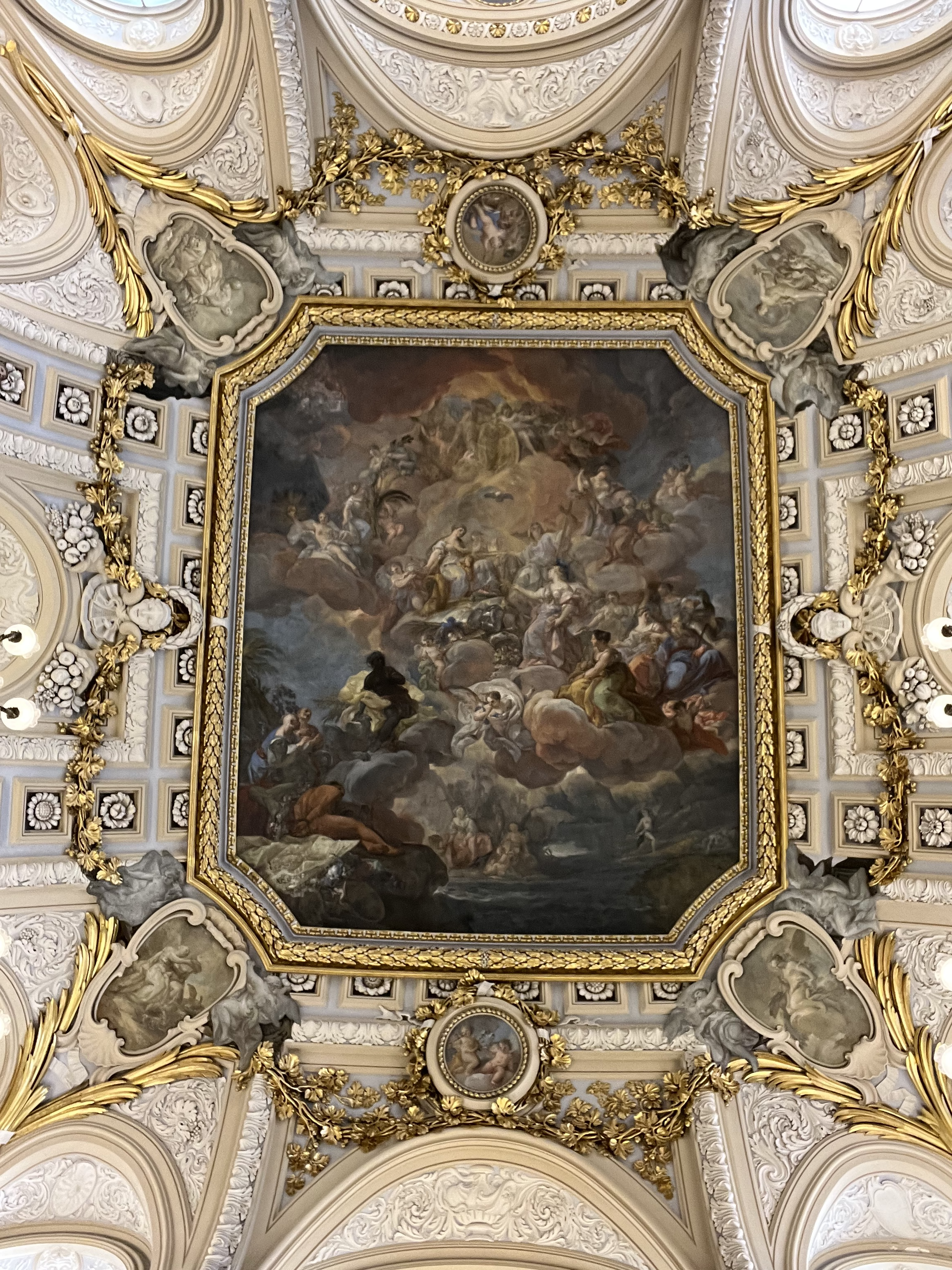The Plaza Espanã at one end of the Grand Via was wonderful. A long narrow expanse, it is a pedestrian park filled with flowers and trees and walkways. Madrid is full of beautiful parks. The Plaza reaches to the Royal Palace and Madrid Cathedral. Within the Plaza is a marketplace with neat rows of wooden stalls selling all types of goods. We saw the largest loaves of bread we have ever seen for sale. Before we visited the Royal Palace, we were able to witness the Changing of the Guard outside. Stately, yet, simple. Inside the Palace we were once again absolutely surprised with the huge scale and the beauty we saw. The interior rooms were easily as beautiful, if not more so, than the other grand palaces of Europe we have experienced. Ceramic work on moldings and sculptures were eye catching and colors within rooms were totally coordinated. The artistic tapestries woven by weavers from Brussels were breathtakingly beautiful.