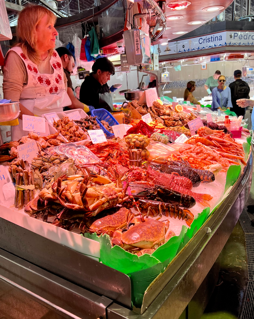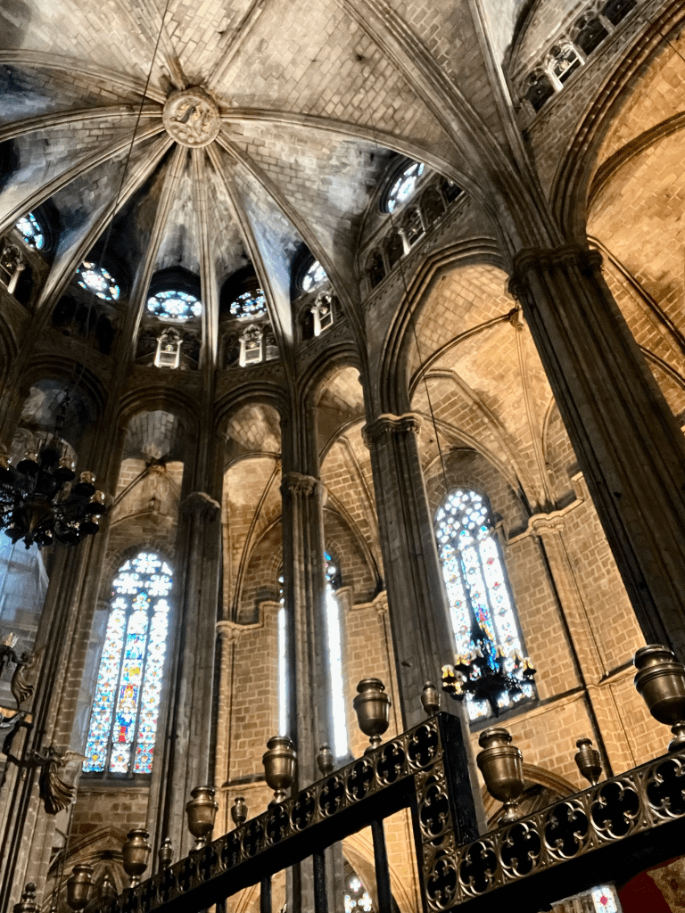 Back in Barcelona, all of us enjoyed Las Ramblas, the main shopping and strolling venue in the city. It is tree-lined all the way to the ocean. Along the way is the St. Josep la Boqueria market, a colorful and fun experience of every food imaginable. We didn’t think we could pry Allen away. We did, finally! As always, we found wonderful restaurants in which to eat and we discovered fried olives—muy bien! Visiting the Gothic Quarter led us up very small alleyways and into hidden squares in this medieval part of the city! We had some of the most unusual gelato ever with very dark chocolate being a favorite. Barcelona is an easy city in which to ramble on and on and never get tired of the sensory overload.