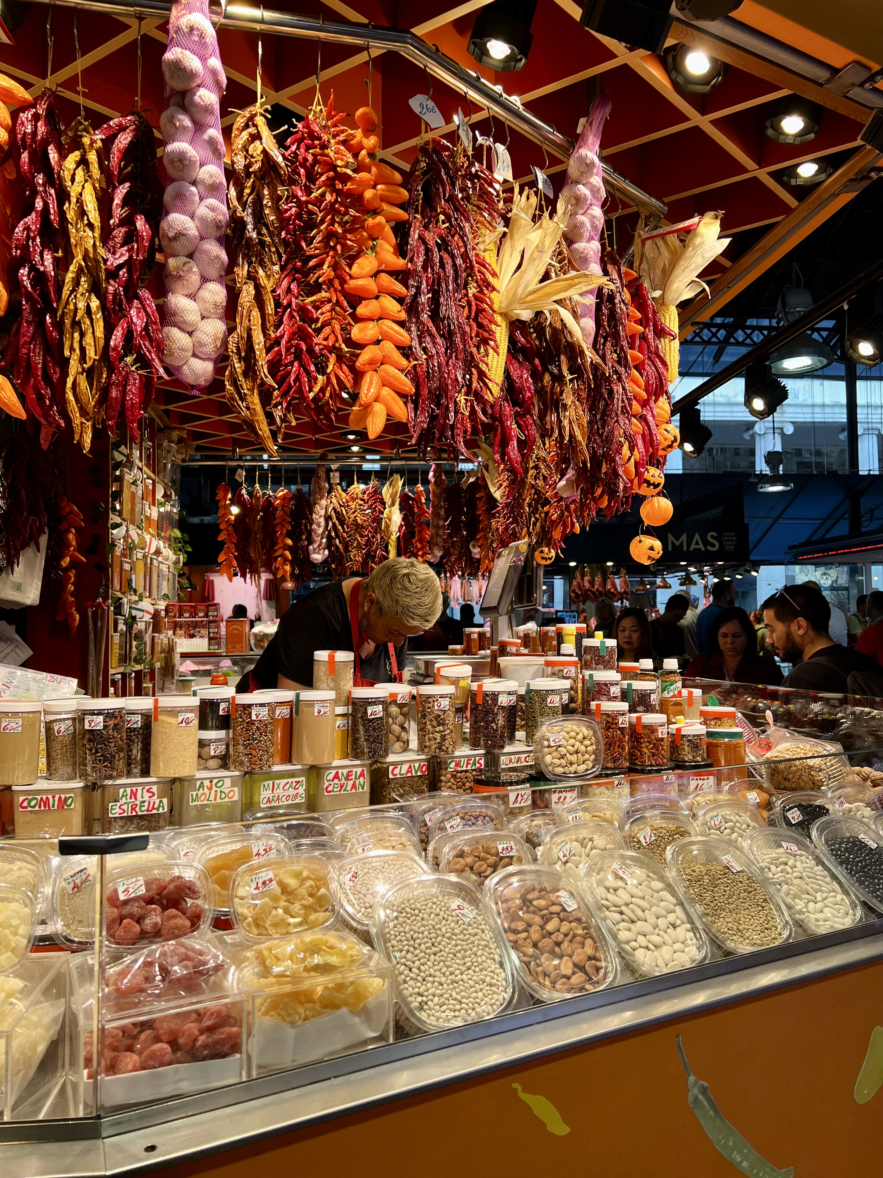 Back in Barcelona, all of us enjoyed Las Ramblas, the main shopping and strolling venue in the city. It is tree-lined all the way to the ocean. Along the way is the St. Josep la Boqueria market, a colorful and fun experience of every food imaginable. We didn’t think we could pry Allen away. We did, finally! As always, we found wonderful restaurants in which to eat and we discovered fried olives—muy bien! Visiting the Gothic Quarter led us up very small alleyways and into hidden squares in this medieval part of the city! We had some of the most unusual gelato ever with very dark chocolate being a favorite. Barcelona is an easy city in which to ramble on and on and never get tired of the sensory overload.