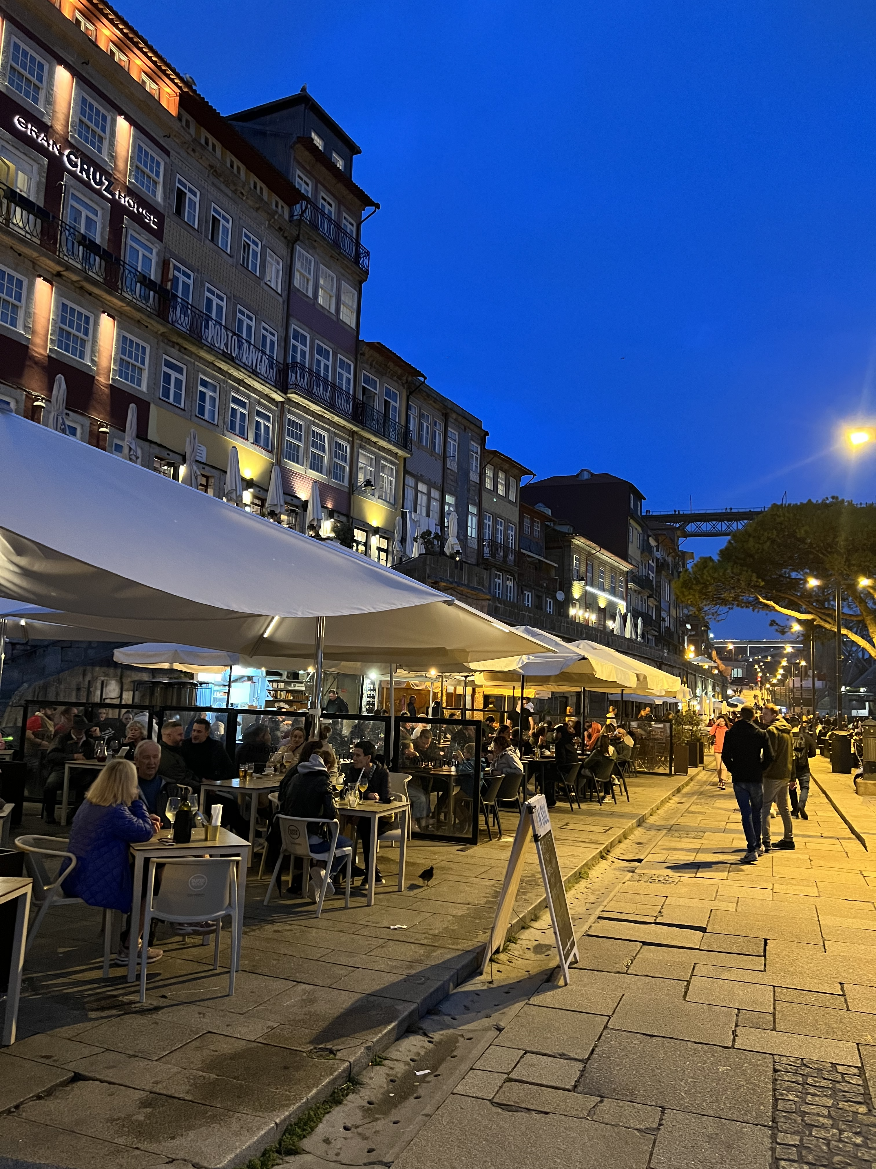 We walked a short distance to a pedestrian area filled with shops and restaurants and picked a restaurant already packed with people. It was a delicious choice! We ordered a Porto specialty—Francesinha—Portuguese bread stuffed with beef, sausage, mortadella and goat cheese and covered with a mozzarella shell with a fried egg on top and covered with a beer sauce all heated on a grill. That’s a mouth full, right? We enjoyed the “sandwich.” With fries, of course!