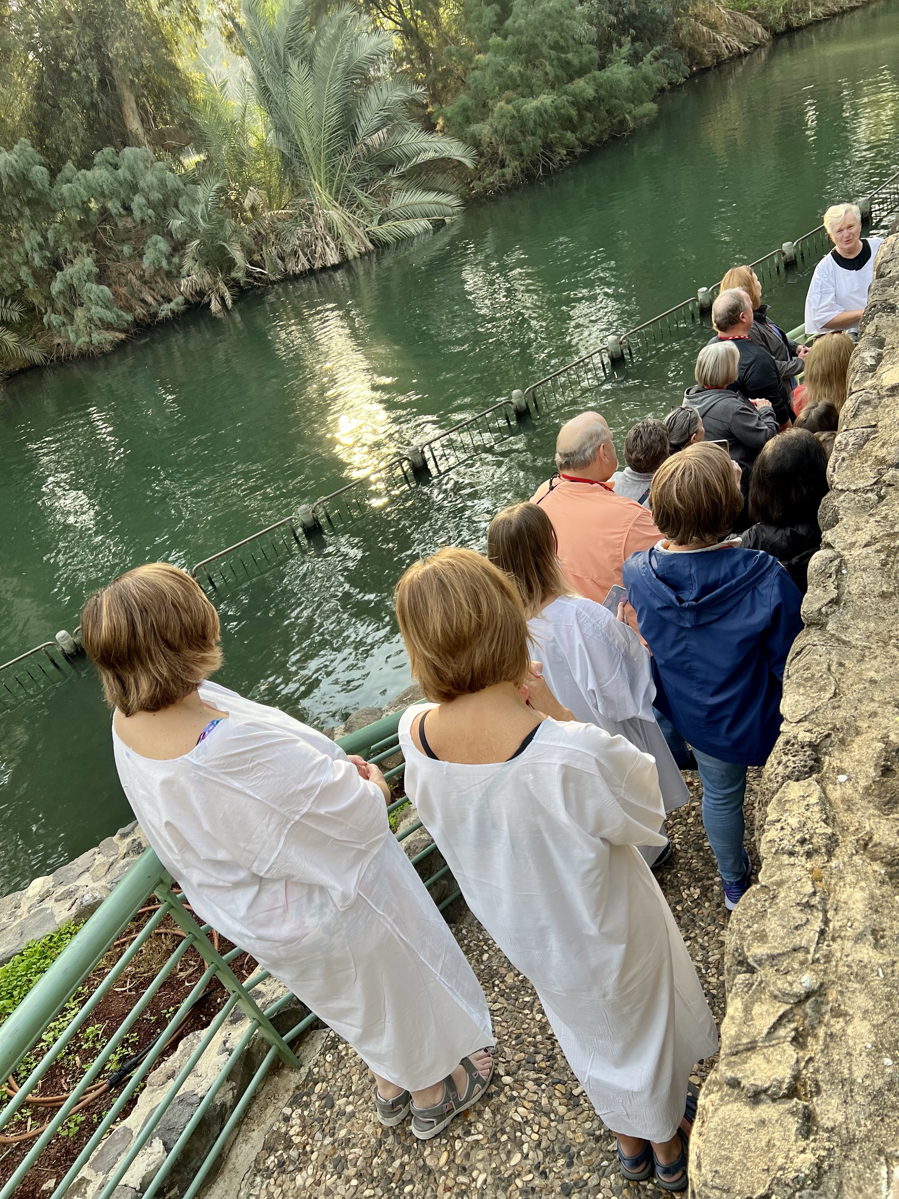 We started our day with an early morning trip to the Jordan River where important stories of Jesus’s ministry took place; most importantly, the inauguration of His public ministry when he was baptized by John the Baptizer. It was here that His Father in Heaven and the Holy Spirit gave public witness that Jesus was the Son of God and that the Father, Son and Holy Spirit were in union as the Trinity. We took time on the banks of the Jordan to remember our own baptisms as we reenacted that part of our personal spiritual journeys with water from the Jordan. It was a priceless moment in time. Interestingly, the water was warm on this beautiful winter day.