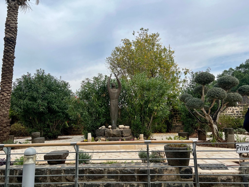 Nearby, we arrived on a hill overlooking the Sea Of Galilee into which the River Jordan flows. Atop the hill is a church covering the spot where Jesus preached the famous “Sermon on the Mount.” We read part of the sermon from the Bible and sang the old hymn, “Just as I Am,” to recall that the sermon was in part a call to follow Jesus throughout life. Surrounding the church was a beautiful garden which had awesome views of the Sea of Galilee below.