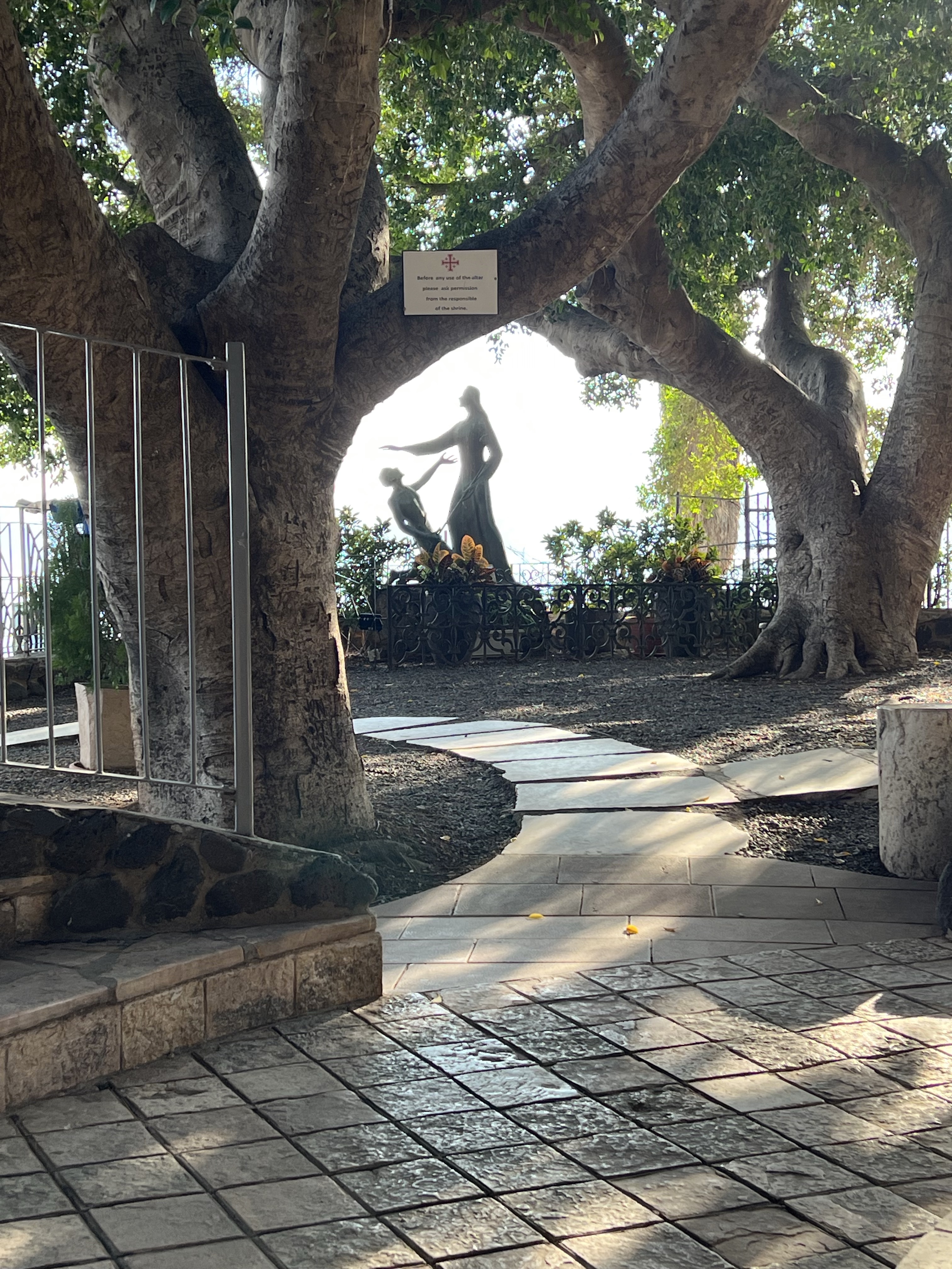 After lunch, we drove to a shore line rocky beach where the resurrected Jesus noticed that the fishermen were not catching fish and told them to cast their nets on the other side on the boat. When they did so, they hauled in an oversupply of fish. Upon reaching shore, they noticed that Jesus was the man who had called out to them. Shortly thereafter, the disciple Peter, who had denied Jesus three times in public was restored to ministry by Jesus Himself as He asked Peter to “Feed my sheep.” A church and beautiful gardens surround this beach.