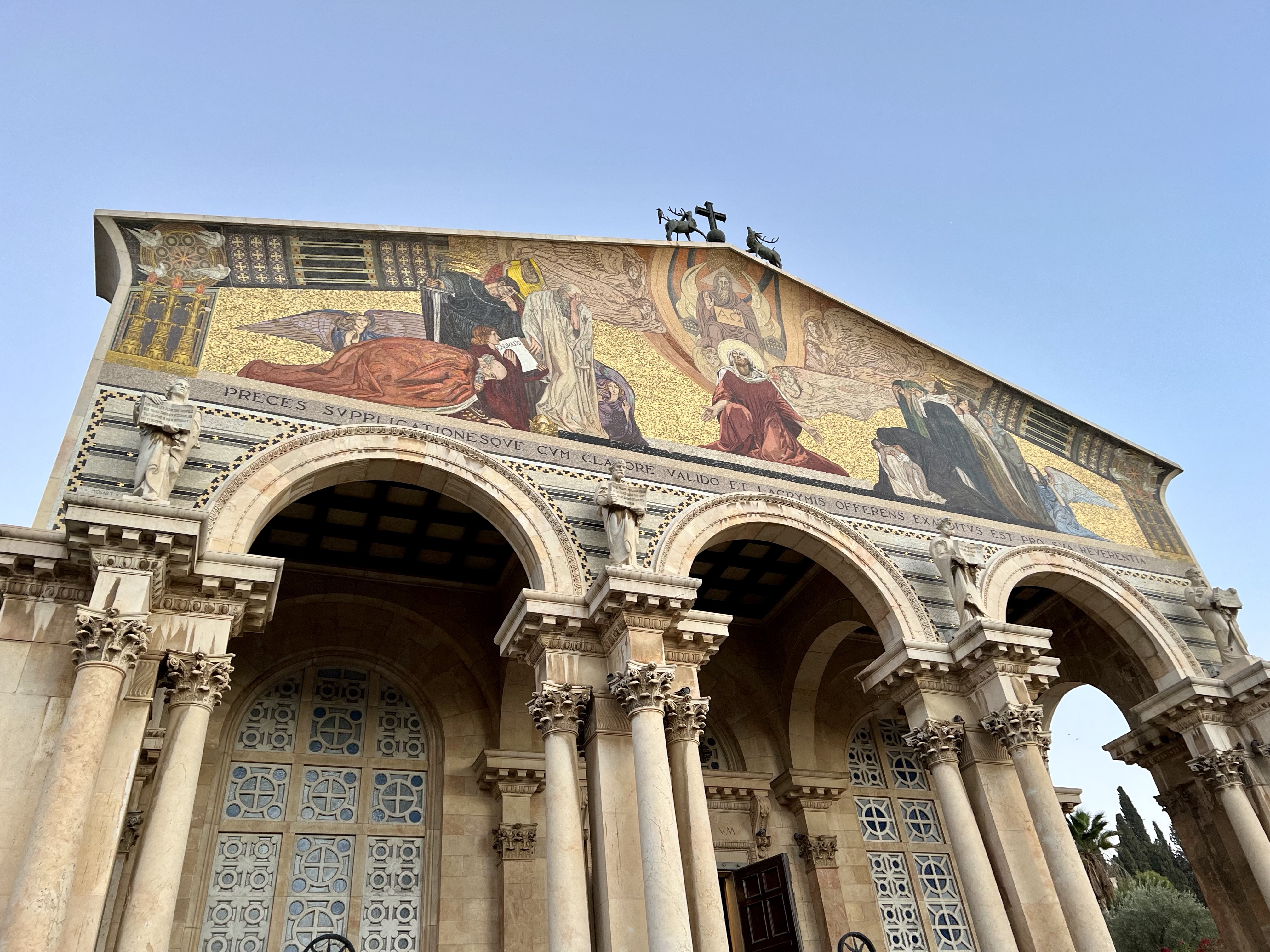 From Bethlehem, we returned to Jerusalem to the Mount of Olives, where Jesus went to pray with His disciples. Over 2,000 year old olive trees witnessed Jesus’s visit. We had one section of the garden to ourselves where we spent time in personal reflection and prayer. This was a powerful time, and our view of Jerusalem across the valley was glorious. We walked all the way down to Jerusalem on the Palm Sunday Road immediately outside the gates of the Mount of Olives, the same road on which Jesus rode a donkey to the applause of the people of Jerusalem. After the Last Supper with His disciples, Jesus took His disciples to the Garden of Gethsemane at the base of the Mount of Olives. Here He was betrayed by Judas, handed over to the soldiers, and the Passion Story began to unfold ending in the Crucifixion of Jesus. We visited the stunning Church of All Nations at Gethsemane filled with intricate mosaics.