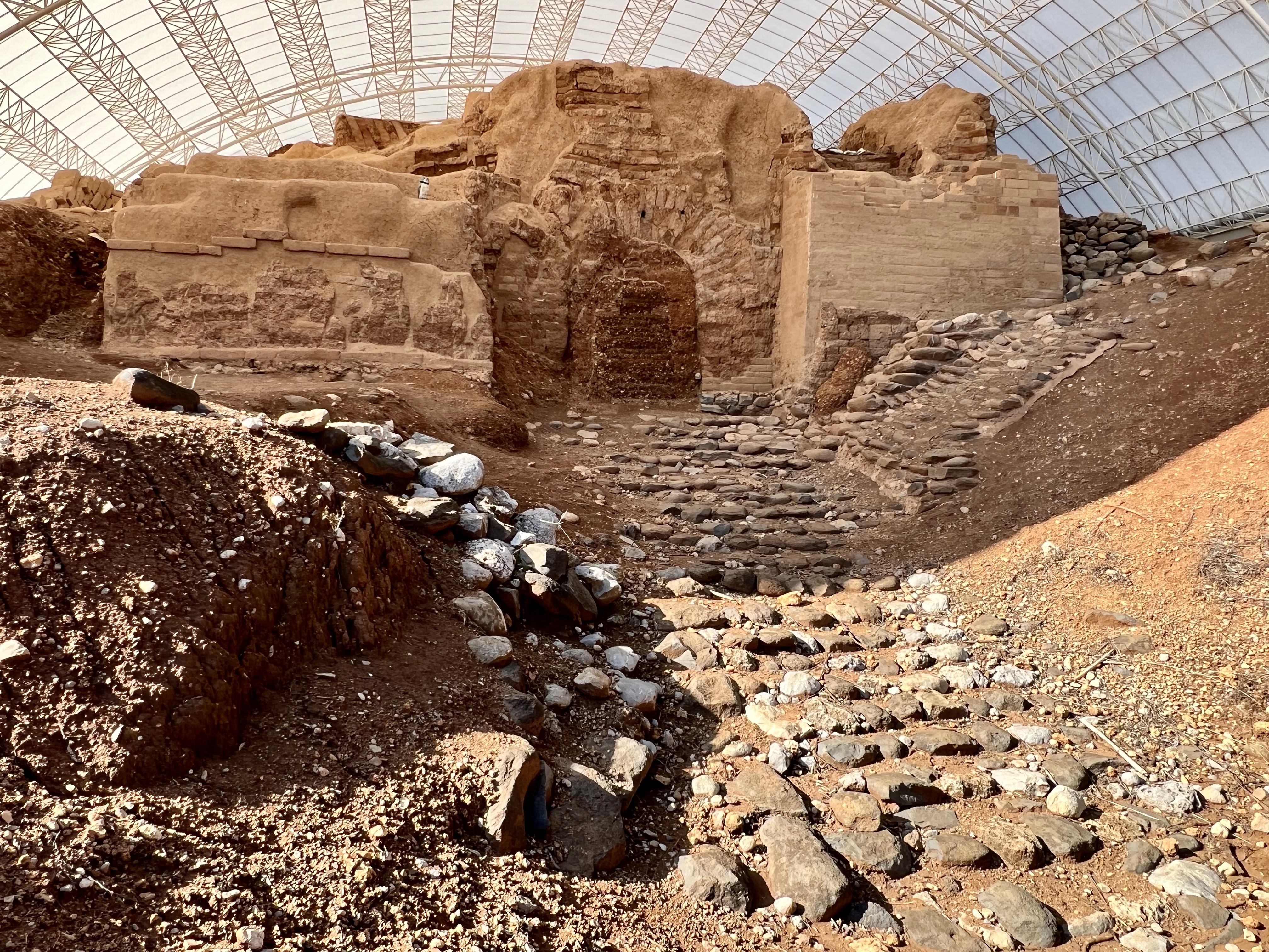 From Magdala we drove to Dan, a journey that few tourists take. It was the home of the tribe of Dan, one of the twelve tribes of the Jewish people. However, Dan’s history goes back much farther, possibly to the year 7,500 B.C. Lot, the nephew of Abraham, had been kidnapped; Abraham pursued the captors all the way to Dan. We saw Abraham’s Gate, the ancient city’s mud brick entry. Recently uncovered, it is the oldest such gate in existence, since most mud brick disintegrates over time due to water. The gate dates to approximately 2,000 B.C. When King Solomon, who built Jerusalem’s Temple, died, Israel divided into two separate nations. The two southern tribes became Judea, and the ten northern tribes became Israel. Israel’s new King Jeroboam decided to build new Temples for his nation, and he chose Dan for one of them. The problem was that the new Temple in Dan combined false worship with truth, and even had a golden calf. We saw where the golden calf would have been placed. Archeological conservers were hard at work the day we visited, yet we were privileged to see the 1,300 B.C. gate of the city. The city never recovered from the idolatry of King Jeroboam and eventually the ten tribes were carted off into slavery, basically disappearing from history.