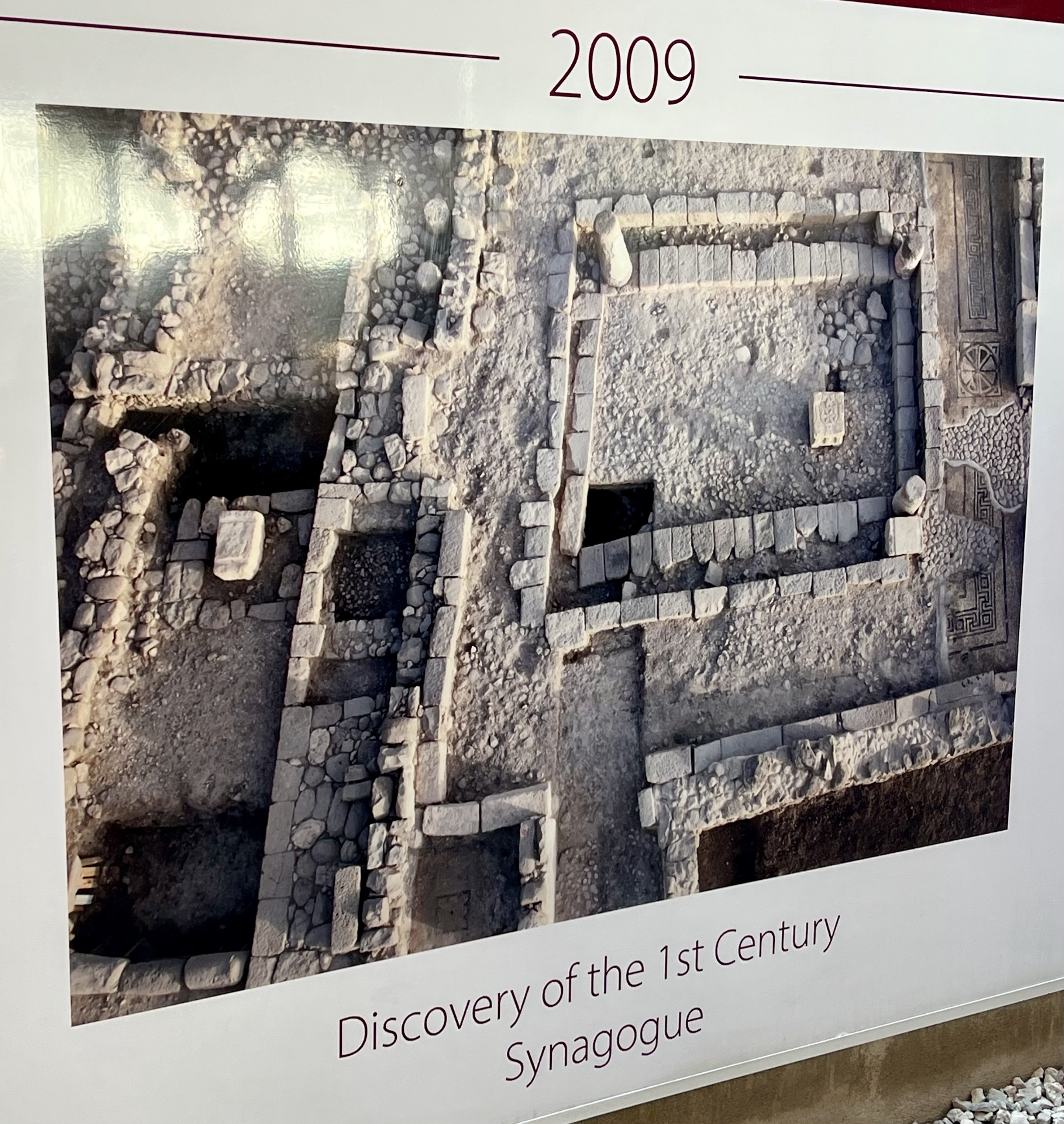 We boarded our bus to travel to Magdala, the home of the Biblical Mary Magdalene, the first person to see Jesus after the resurrection. A thriving community on a major trade route, Magdala was home to a beautiful synagogue, now being excavated. Here was discovered the oldest engraving of a menorah ever found. The engraving is like a post card from the past in that it shows the pillars of the Temple in Jerusalem before it was destroyed in the first century.