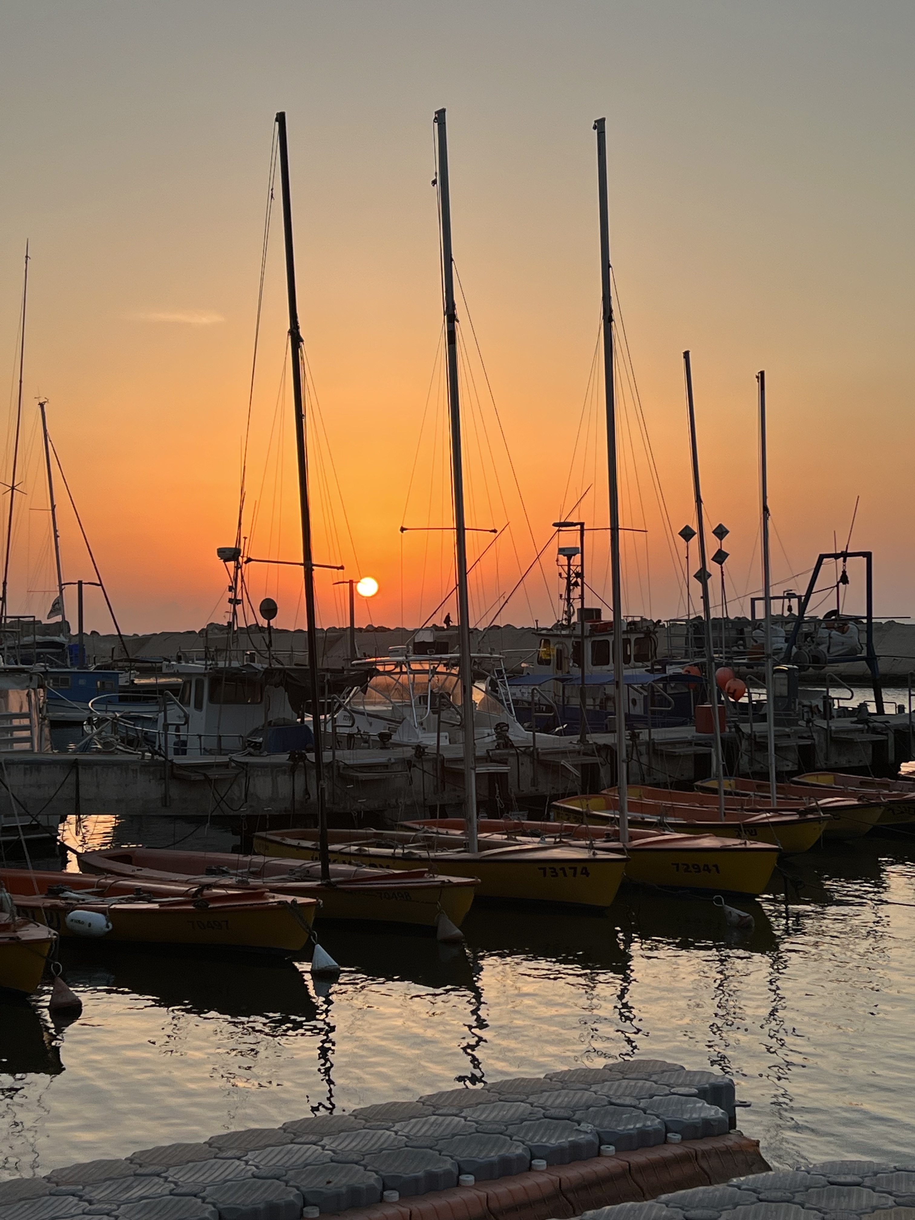Jaffa, ancient Joppa, is a seaside port and old city not far from Tel Aviv. Here, Old Testament Jonah tried to escape from God, being swallowed by a large fish when he was thrown overboard into the Mediterranean Sea. It was here that Jesus healed Tabitha (Dorcas), a revered woman of extraordinary good works. It was also here that Peter, in the still present home of Simon the Tanner, saw a heavenly vision of unclean animals and heard God say he was to eat. Peter realized that God was telling him to open the church to Gentiles, who were considered unclean, thus setting the church on a missionary path into the world. Today, the old city has been preserved and is quite trendy with artist shops along its narrow cobbled streets and sailing vessels filling its long pedestrianized harbor area. One particularly unusual artist piece was above us as we walked along one area. Hundreds of white plastic lawn chairs were stacked together and snaked over and around buildings. Fun!