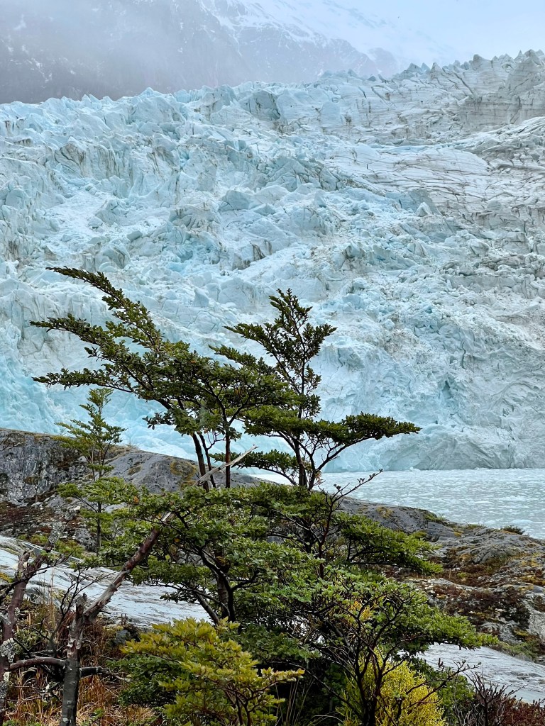 The next day was dedicated to visiting and viewing glaciers. Patagonia has the greatest contraction of ice after Antarctica and the Arctic. While spring here, it has been snowing on and off. Beautiful. Kathy stayed in while I braved the elements to stand close up to the Glacier Pia.
