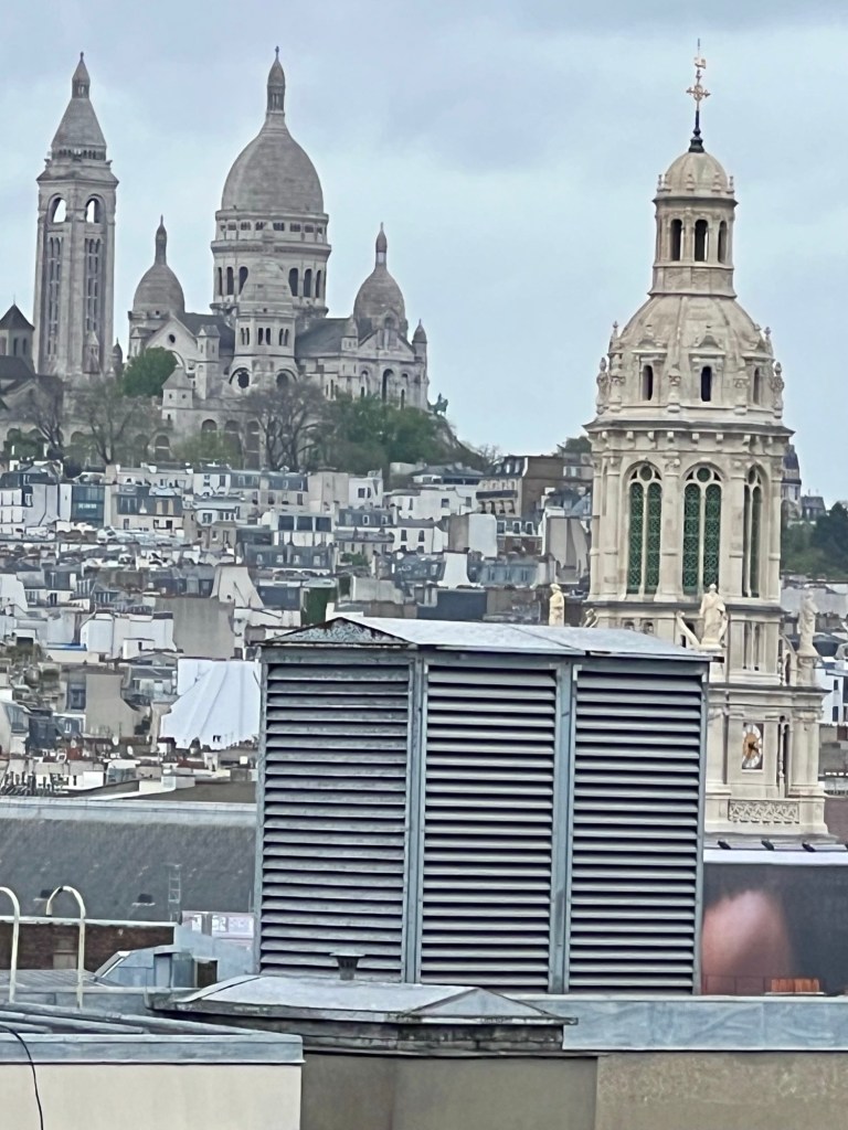 The Galeries Lafayette and Printemps, luxury department stores, were across from the Palais Garnier. We enjoyed seeing the beautiful stained glass dome in the Galleries and looking out from the top of Printemps for beautiful views of the city. We did some minor shopping, but basically enjoyed the views. We had a very good meal at a Brasserie in the area. Randy, our friend, and I ate great lobster rolls. Back at the hotel, Kathy and I took it easy, while Randy and Melisa did some more shopping in the covered passageways. Late in the evening, we went to a Hard Rock Cafe next to our hotel for snacks of nachos, a taste of home in Texas.