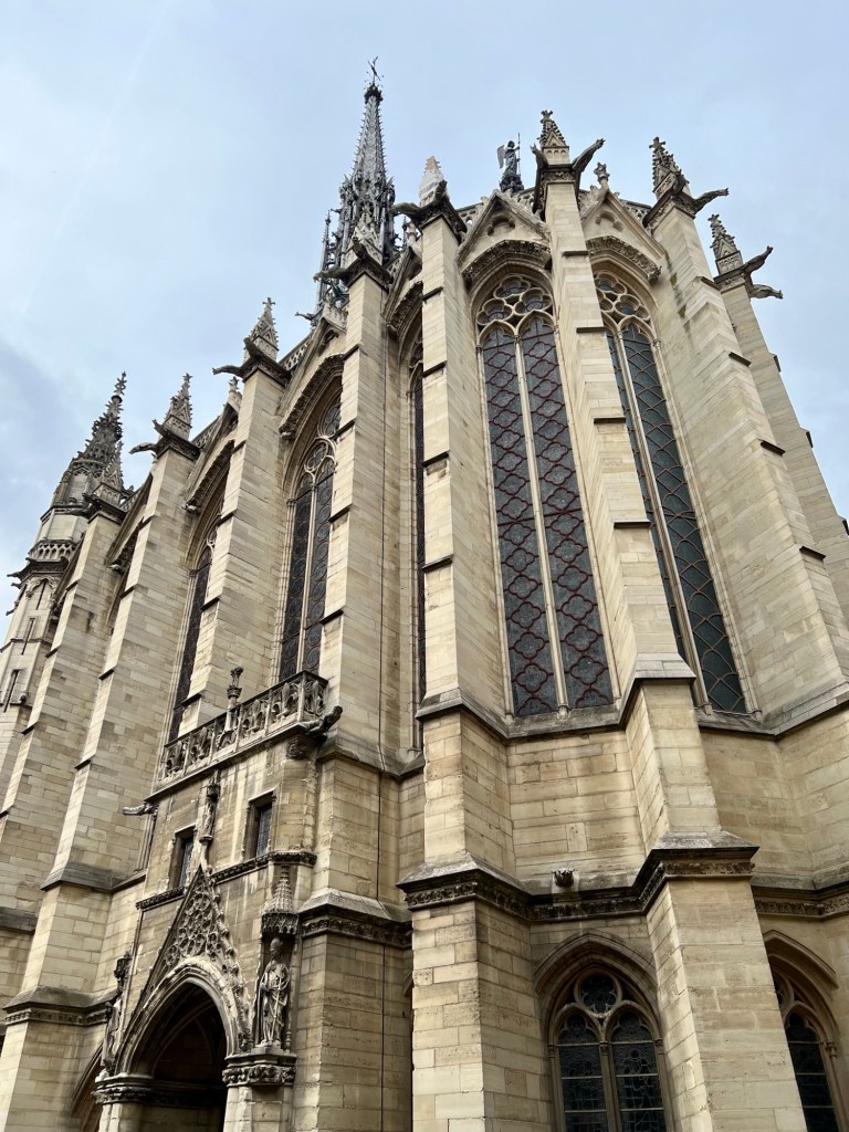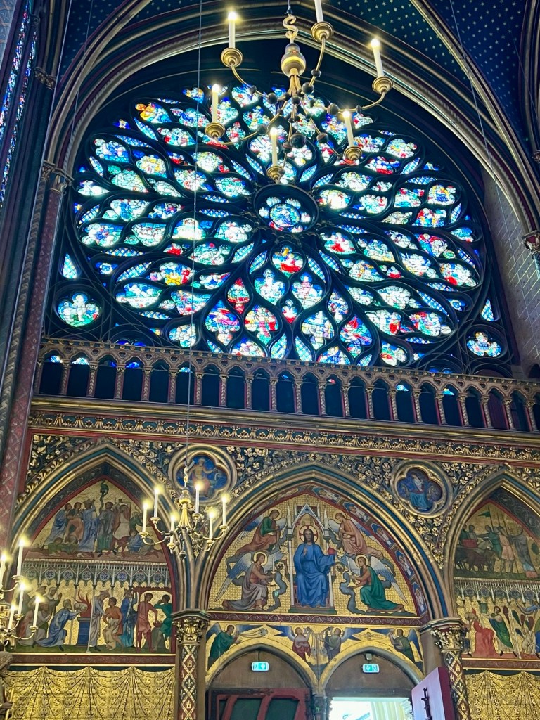 We had five o’clock tickets to a concert in La Sainte Chapell. This chapel was originally built to house relics from the passion of Christ. Floor to ceiling stained glass surrounded us in beautiful light as the strains of stringed music wafted through the air. We decided it would be hard to find a more beautiful venue for a concert. Security was tight; Paris is preparing for the Olympics soon to arrive.