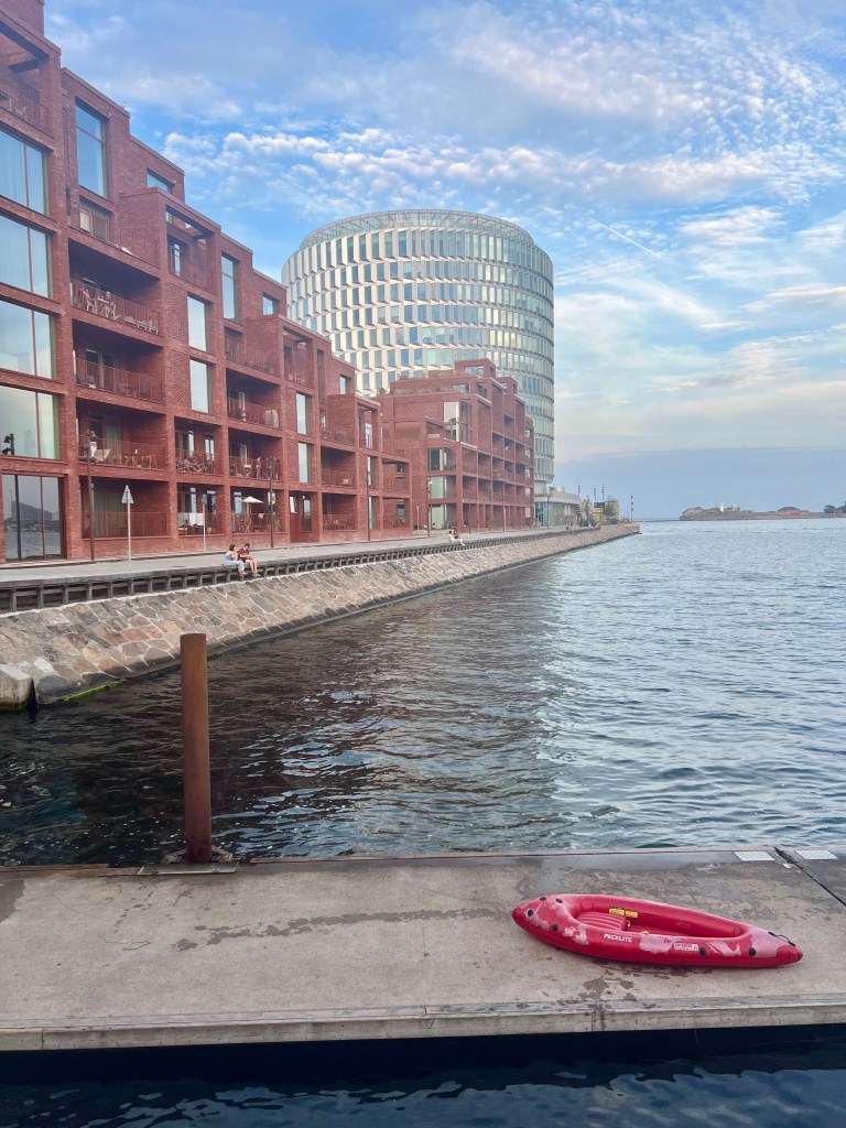 An Addendum–While Kathy edited our photos from today, I went for a walk outside our hotel. I’ll take her after we post this blog. The stylish apartments along the waterway have balconies with live plantings overlooking the sea and the islands beyond. A boardwalk is strewn with people sunbathing and visiting. Awesome boats ply the canals and ocean beyond. In the near distance are striking buildings and I see a raised electric metro train moving toward the central city. “Beautiful people” are swimming in the sea in areas marked off by floating pontoons while others dine in outdoor cafes. I noticed that none of the bikes in the bike parking areas had chains and padlocks! Yes, very upscale in a very livable way!