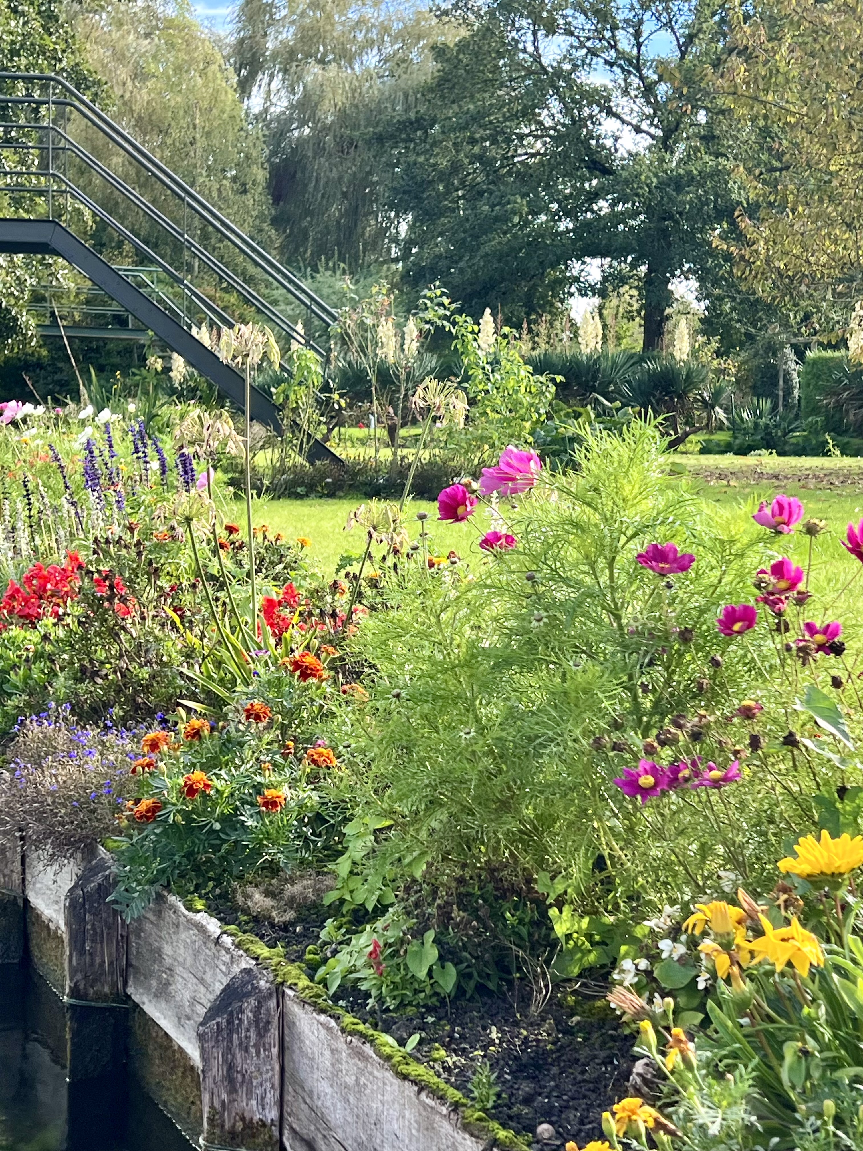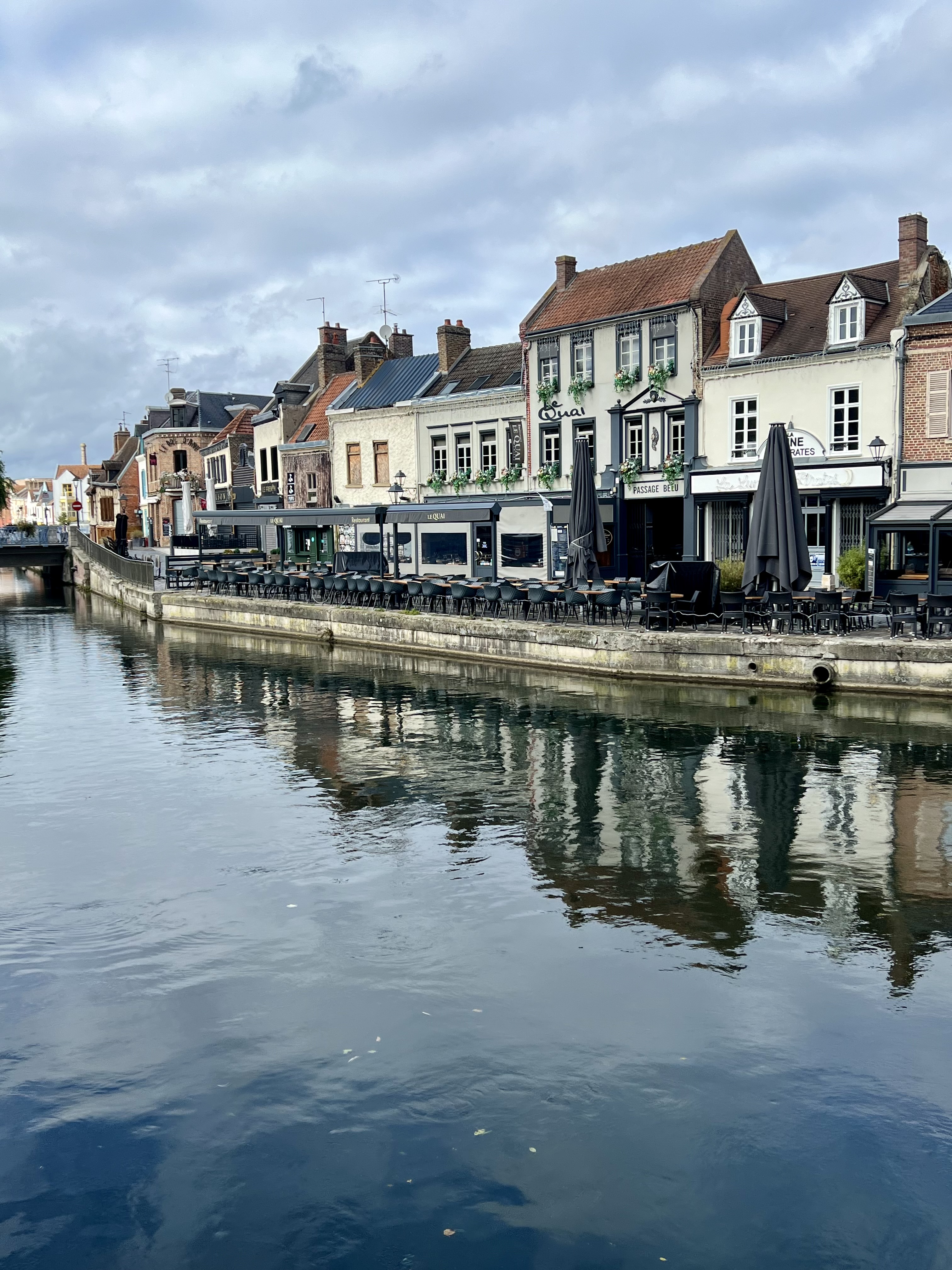 Amiens is very different from Rouen. Almost no half-timbered buildings could be seen. Instead, marble and brick buildings in eclectic styles line the streets. Canals run through the city, and we walked along them as we headed to the floating gardens biological area of the city. We purchased tickets for the small canal boat ride (40 minutes) that coursed its way along narrow canals and past all types of vegetation. Small vacation rentals line parts of the canals. Flower season is mainly passed, but the river was clear, the air crisp, the sun shining, and we enjoyed our outing.