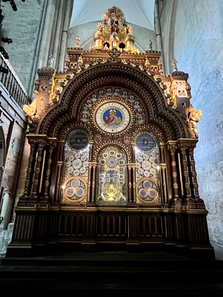 What remains is still imposing! The one transept and the choir are immense and show how glorious the entire cathedral would have been. We took time to view the cathedral’s beautiful astronomical clock containing 90,000 components and 50 moving figurines including numerous functions it can fulfill. It played and chimed and figures danced as we watched.