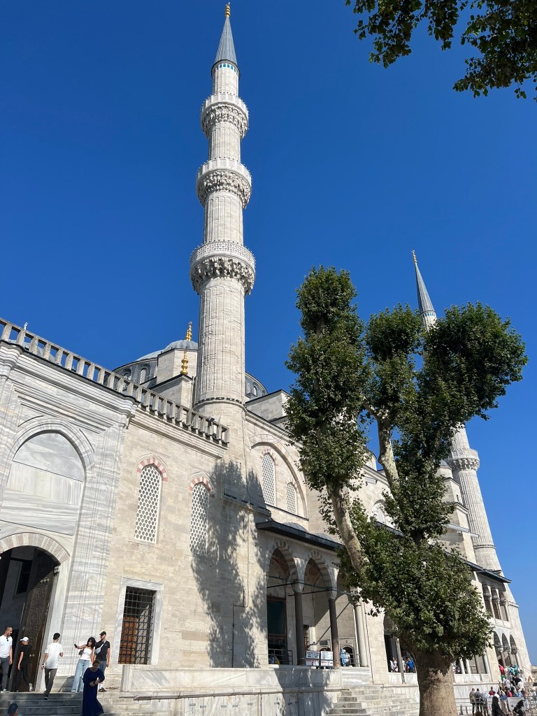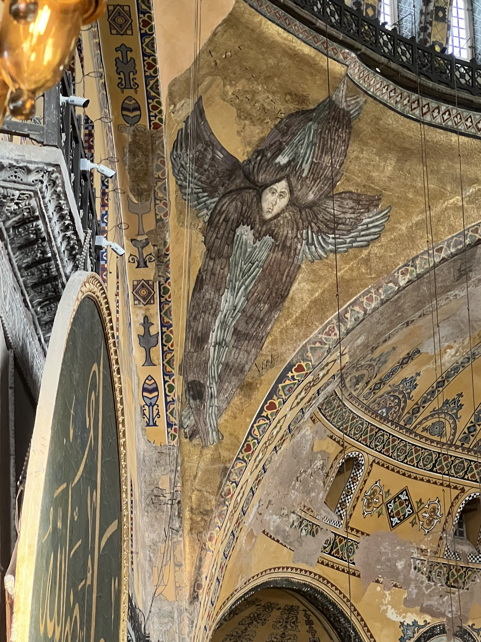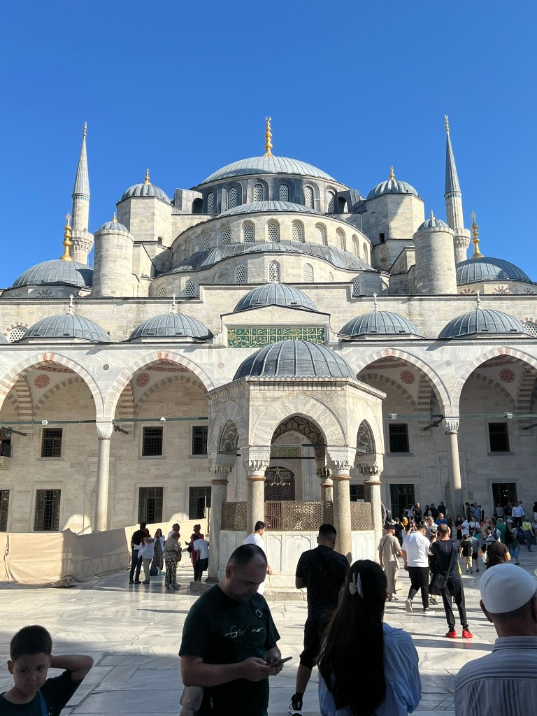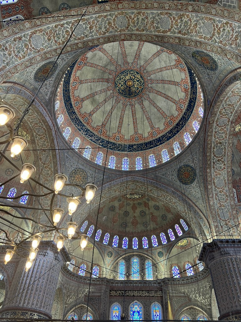 Our cruise of the Greek Isles and Istanbul (two days) and Ephesus in Turkey has been delightful. The white (lime) washed cities, often lining the mountainous cliffs overlooking the clear blue and turquoise waters below, were enchanting. Blue-domed Greek Orthodox churches dotted the heights and old Greek windmills added a unique aura as we walked the hand-laid smooth stone lanes. Istanbul was impressive, and our group of friends frequently commented on how clean and “beating expectations” it was. The Blue Mosque, however, was less than I expected. Still, the intricate blue tiles were beautiful. The Hagia Sophia, the ancient and magnificent Christian Church, was faded glory since so much of it is covered over inside. It is now a mosque and any mosaics with human images that can be seen by worshipers are covered over since Islam forbids such imagery in worship spaces. Ancient Ephesus, where the Apostle Paul was persecuted and where an early Christian congregation was founded, has magnificent ruins. Stone columns line the 3000 year old stone street that leads the way to the proudly standing tall Library of Celsus. Two amphitheaters, one seating 25,000, draw attention. It is hard to believe that 80% of the city has yet to be excavated.