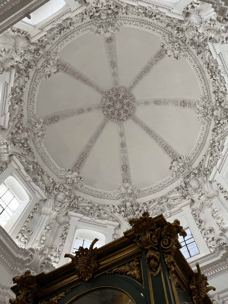 Granada’s Roman Catholic Cathedral is also magnificent. The second largest in Europe, its use of gold highlights throughout the light-filled space is marvelous. The gold pipe organ cases (four) reaching toward the high ceilings were stellar.
