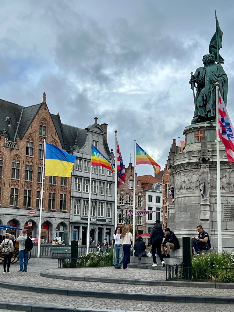 Amazingly, this was the day of the “Tour of Flanders” annual bicycle race, the most important cycling race in Flanders held every spring. It came through the main city square and along the narrow streets. We were able to get a wonderful view along with thousands of enthusiasts. The bicyclists whizzed by followed by cars topped with each contestant’s extra bikes and then emergency and police vehicles. Fun!