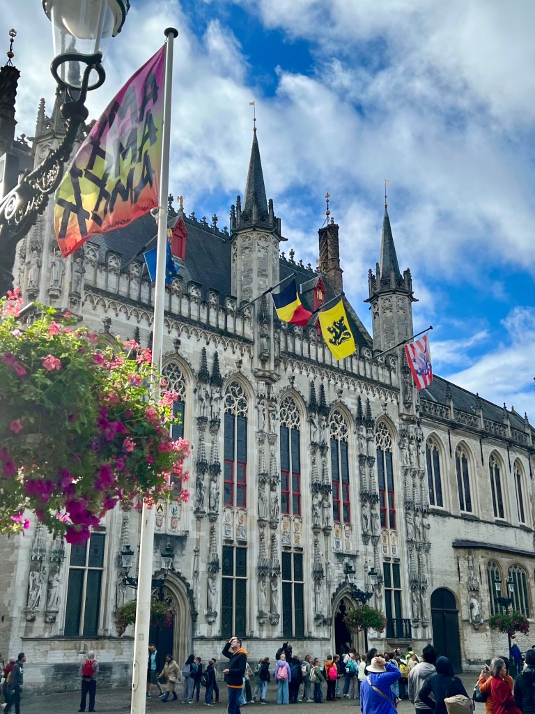 The next morning, May 5, was a bright and beautiful day to spend in Bruges and Ghent. The train ride from Brussels is direct and quick. Bruges is a city time forgot, all for the good. Today it is just as it was hundreds of years ago. Atmospheric, charming, cozy and quaint are descriptive words for this city of canals and cobblestone. Picturesque buildings filled with restaurants, shops, chocolatiers and outdoor cafes line the narrow and winding lanes. Beautiful tree-lined walks pass along rivers.