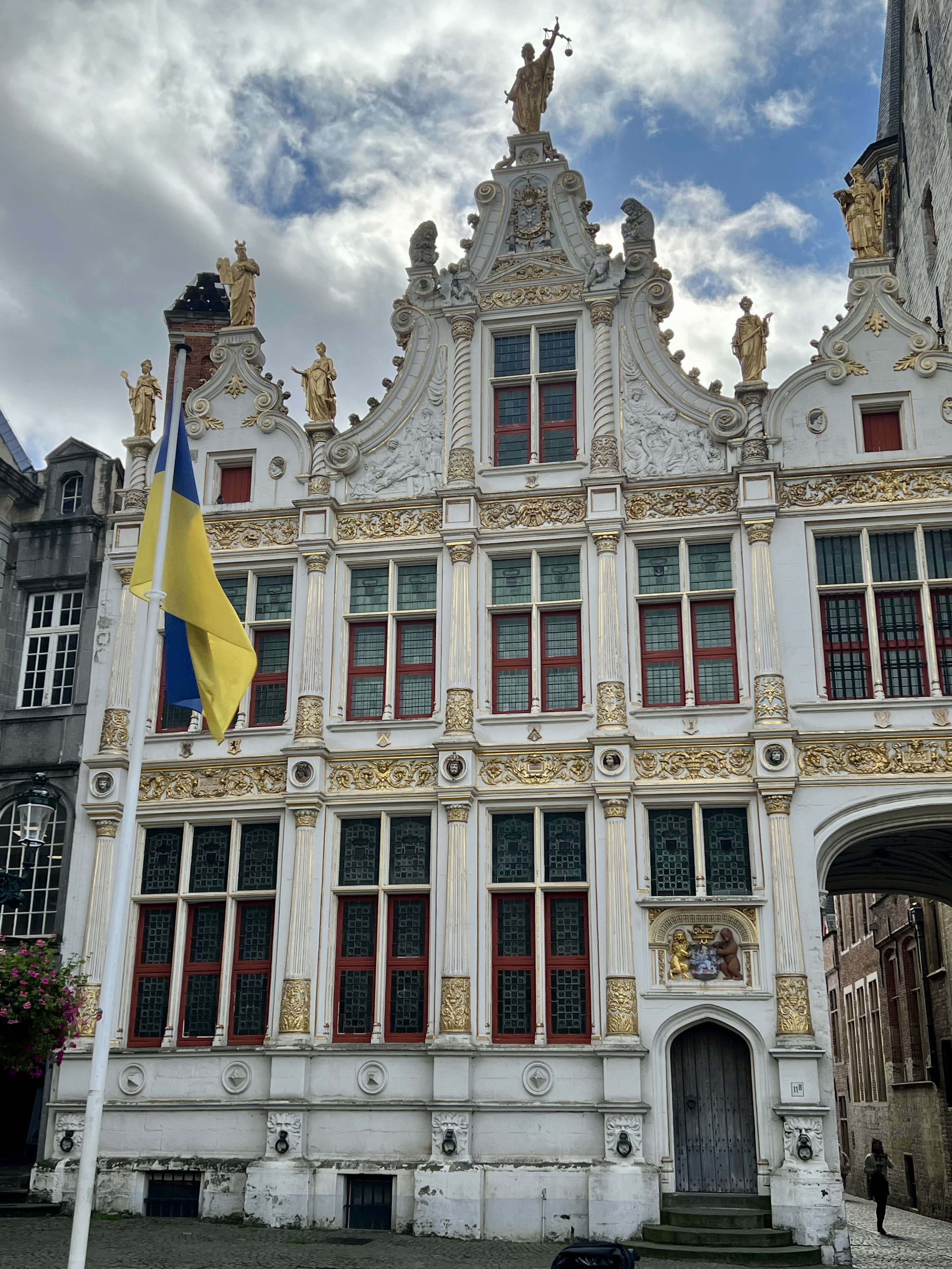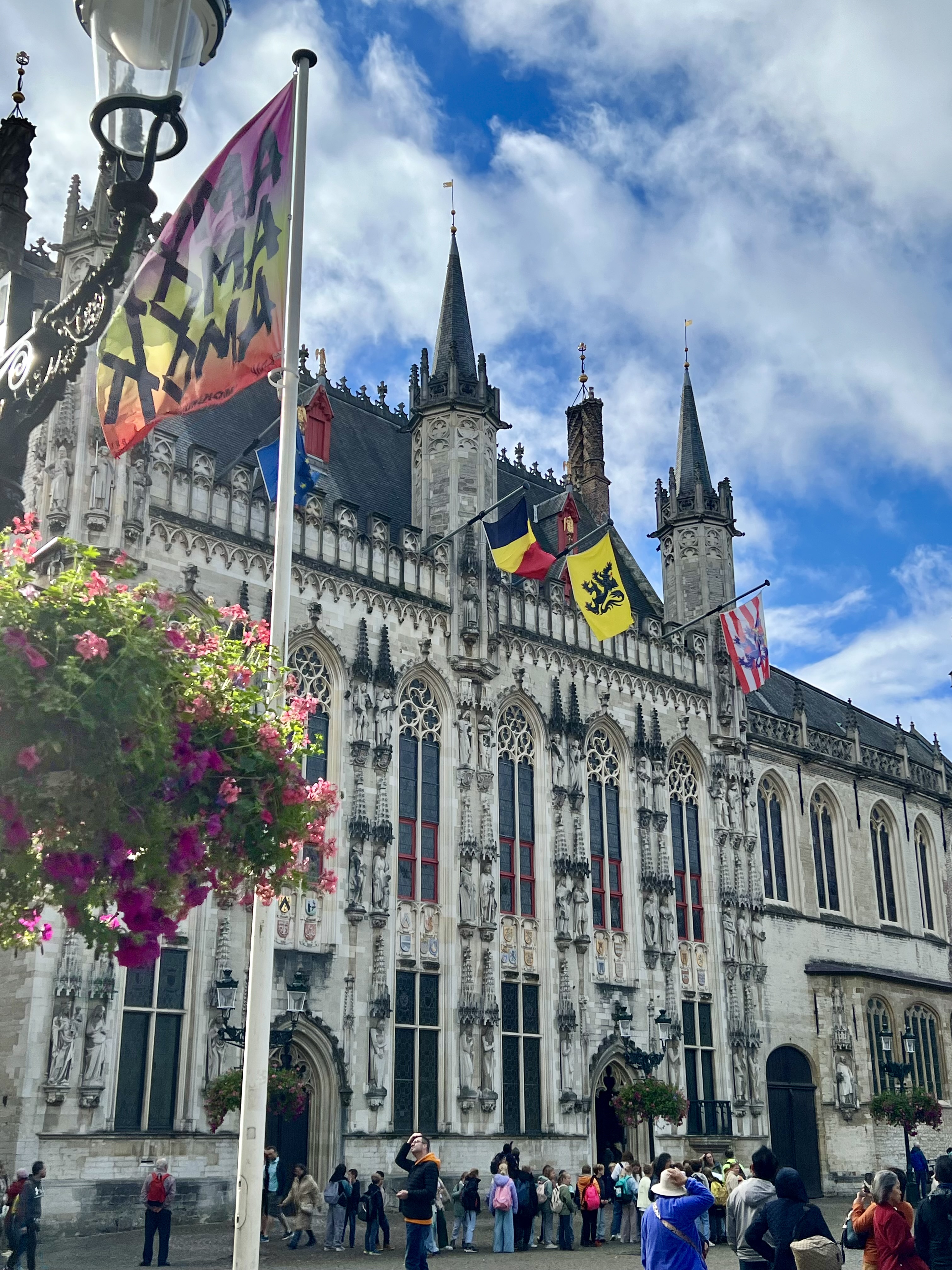 The next morning, May 5, was a bright and beautiful day to spend in Bruges and Ghent. The train ride from Brussels is direct and quick. Bruges is a city time forgot, all for the good. Today it is just as it was hundreds of years ago. Atmospheric, charming, cozy and quaint are descriptive words for this city of canals and cobblestone. Picturesque buildings filled with restaurants, shops, chocolatiers and outdoor cafes line the narrow and winding lanes. Beautiful tree-lined walks pass along rivers.