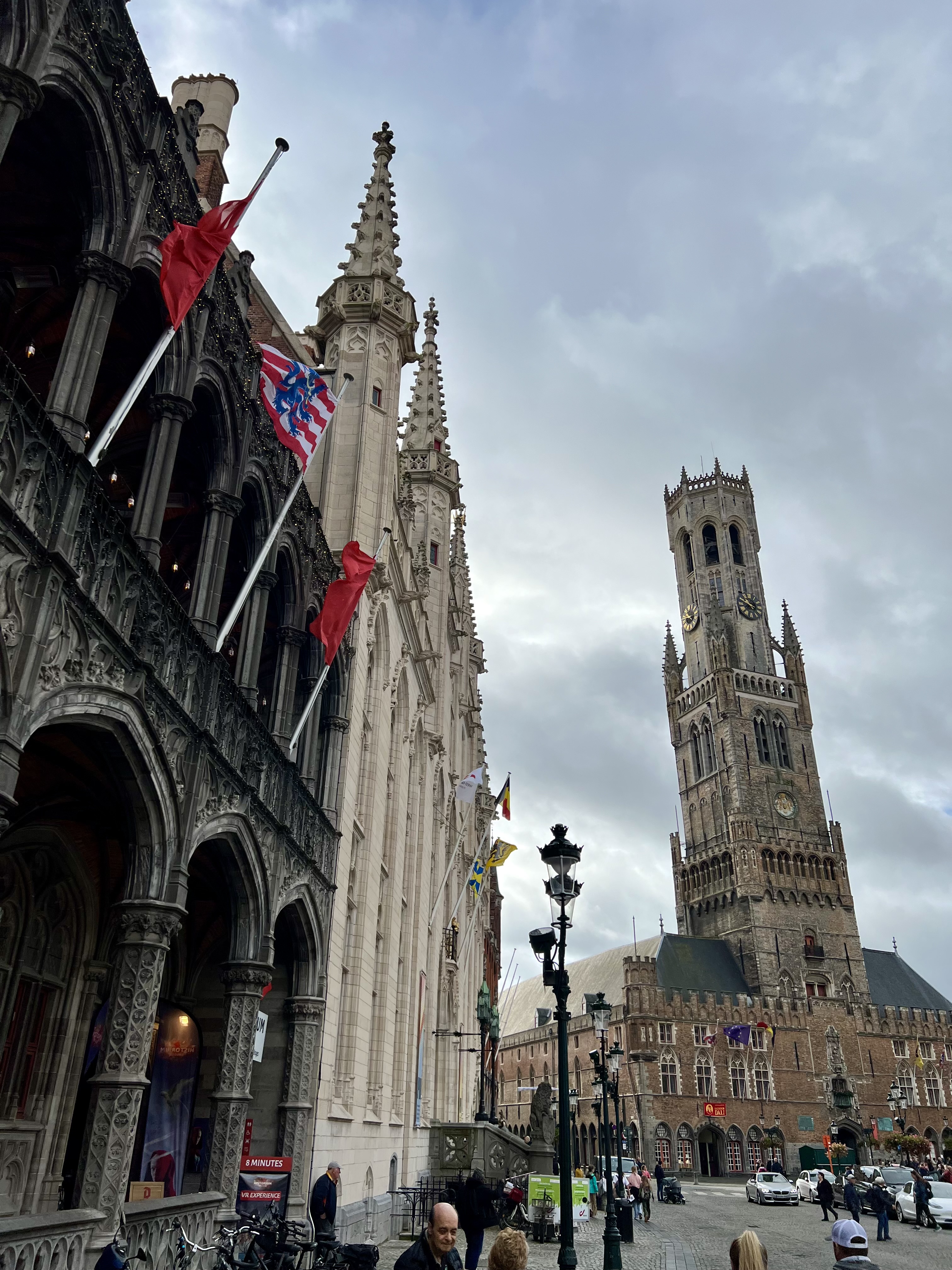 Amazingly, this was the day of the “Tour of Flanders” annual bicycle race, the most important cycling race in Flanders held every spring. It came through the main city square and along the narrow streets. We were able to get a wonderful view along with thousands of enthusiasts. The bicyclists whizzed by followed by cars topped with each contestant’s extra bikes and then emergency and police vehicles. Fun!