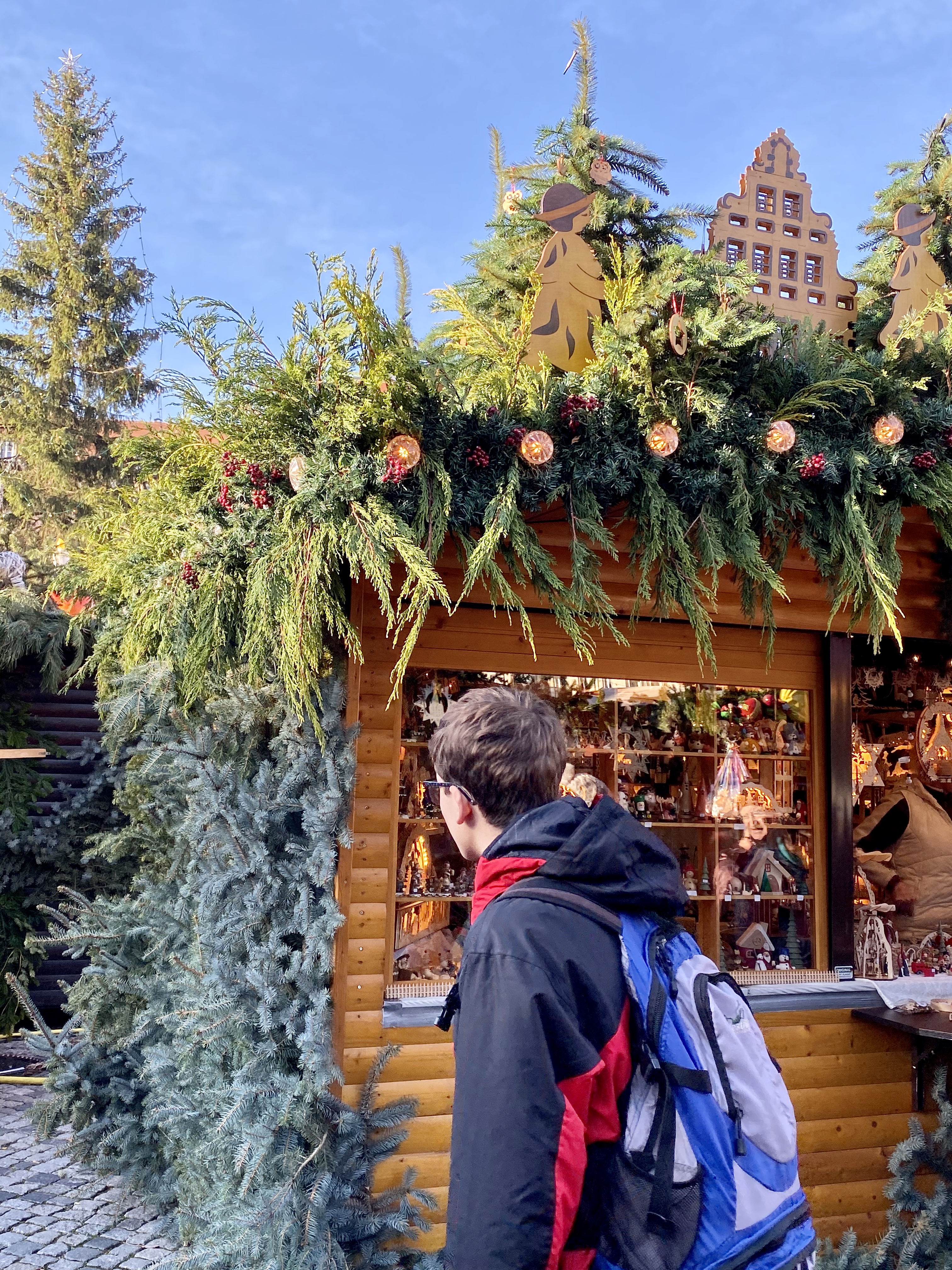 Our long lunch concluded, we stopped into the St. Jacob Lutheran Church with its two grand towers which houses amongst its precious art, the famous Riemanschneider Altar, which contains a vile of blood, traditionally considered from Christ at the Crucifixion. Because of this, the church has always been one of the most important on the pilgrimage route. Once we entered, we noticed that the church was packed. An Advent service was in progress. We were allowed entrance and marveled at the adult choir, the children’s choir, the orchestra, the pipe organ and recorder choir. We were blessed!