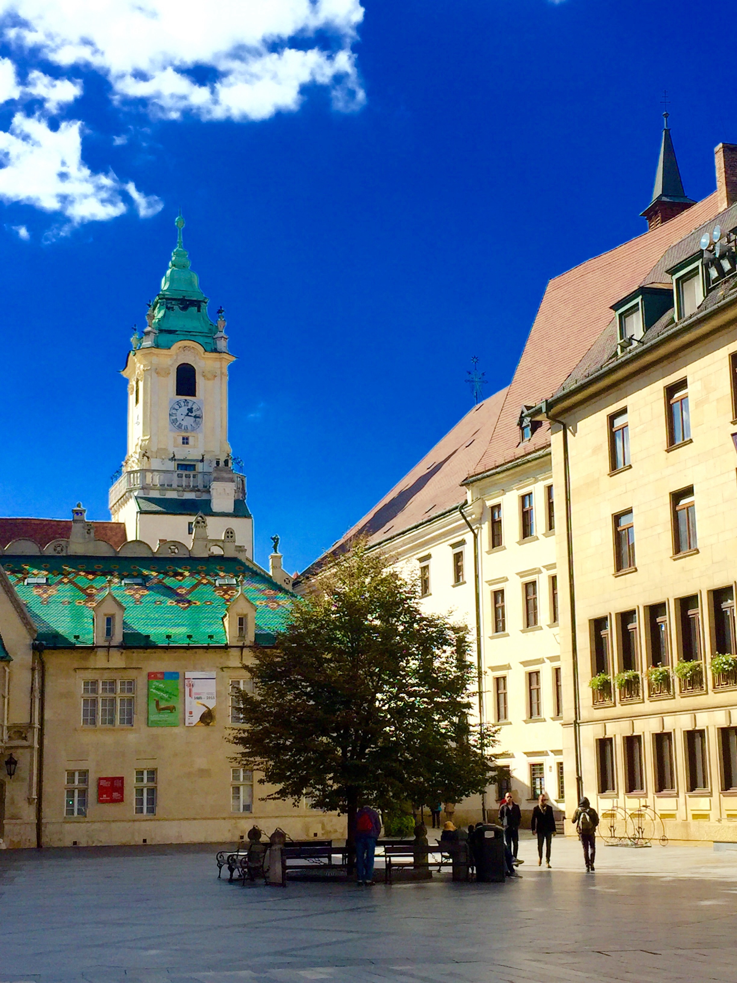 Kathy’s post script: We are so pleased with public transportation in Europe and the ease of using it. We feel quite comfortable with the process and are performing quite well in our travels. Yesterday in Vienna, we looked at the map of the train routes and figured out (by ourselves) the plan to get to the train station the next day from our apartment, and we bought our tickets — for less than three euros. This morning we left our Vienna apartment, walked a block to catch the U6 tram, transferred at the appropriate stop to the U4 tram, then transferred to the U1 that brought us to the main hauptbahnhof in Vienna where we then boarded the train to Bratislava. Upon arrival in Bratislava, we paid less than two euros to take the x13 tram to our stop in Stare Mesto (the Old Town) where we met our apartment manager & settled in to an apartment in the Old Town.